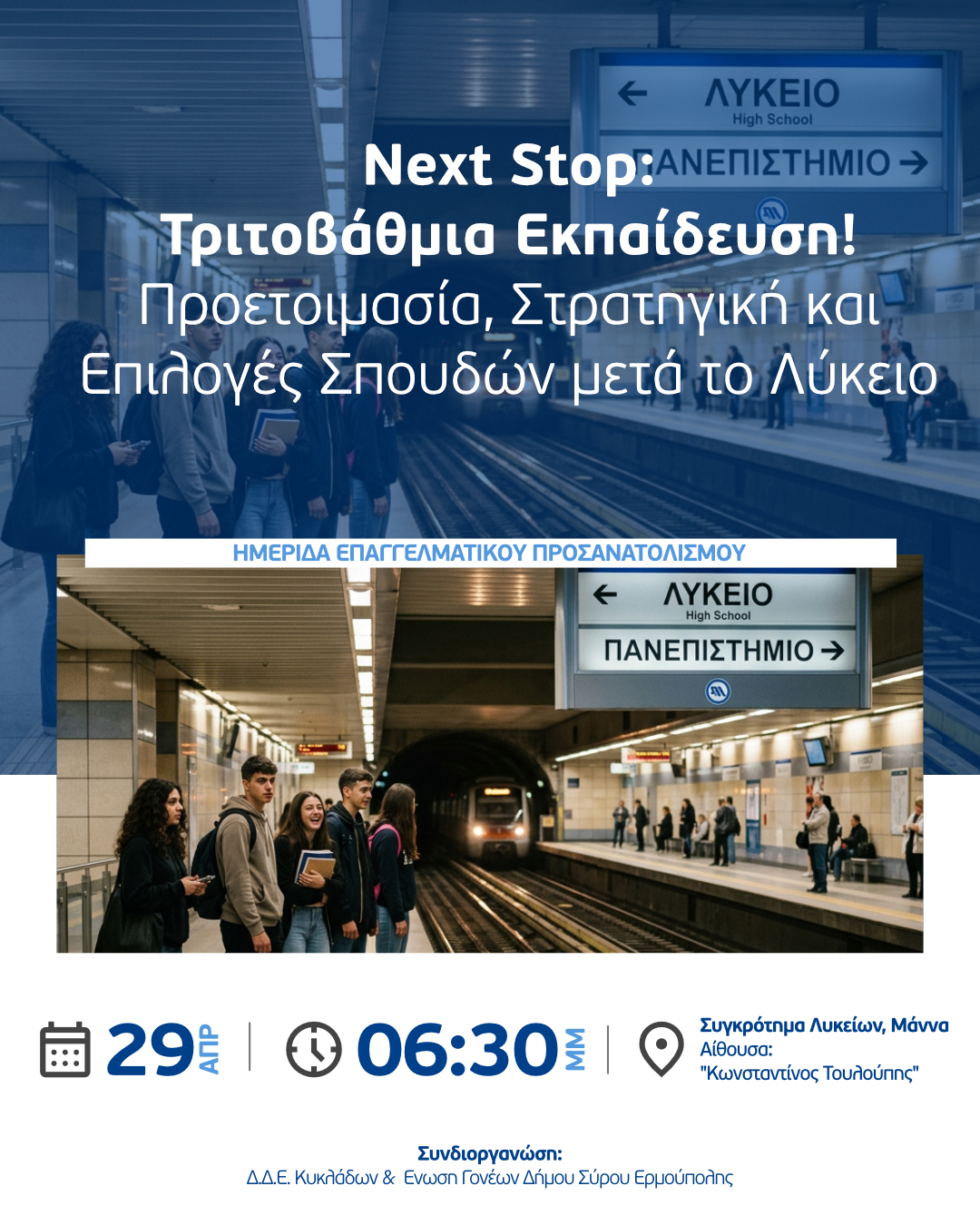 «Next Stop: Τριτοβάθμια Εκπαίδευση – Προετοιμασία, Στρατηγική και Επιλογές Σπουδών μετά το Λύκειο»