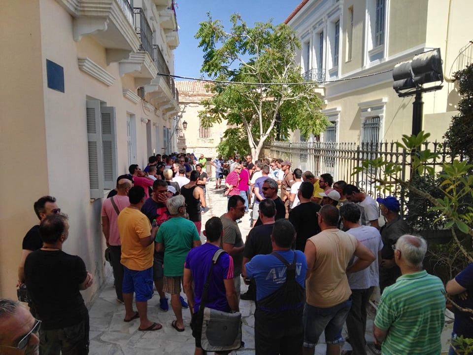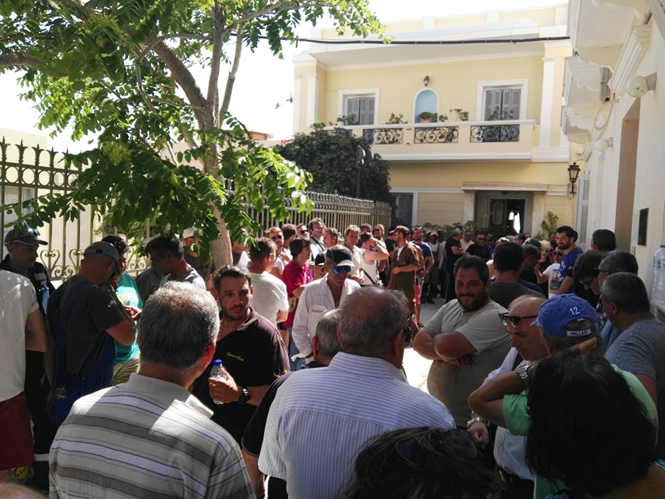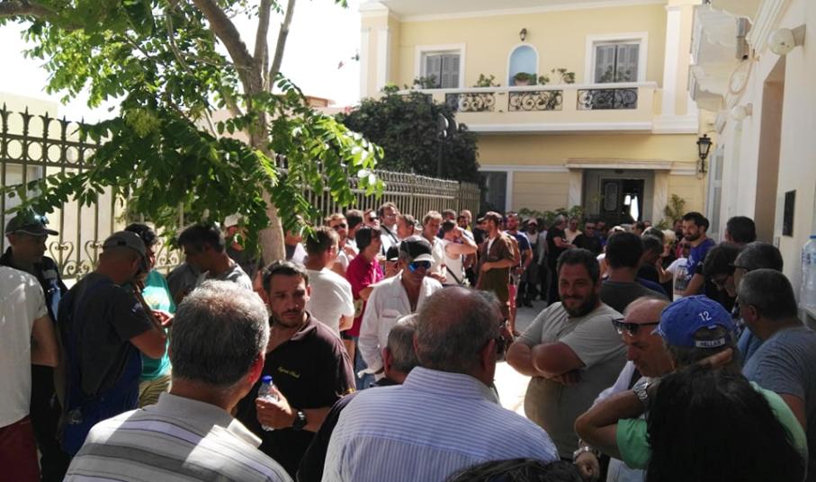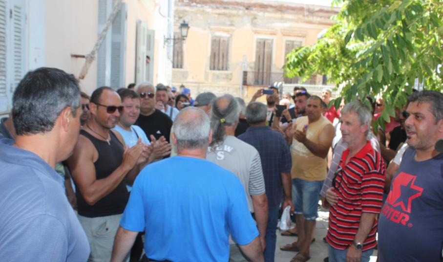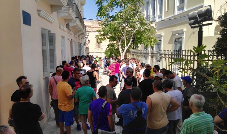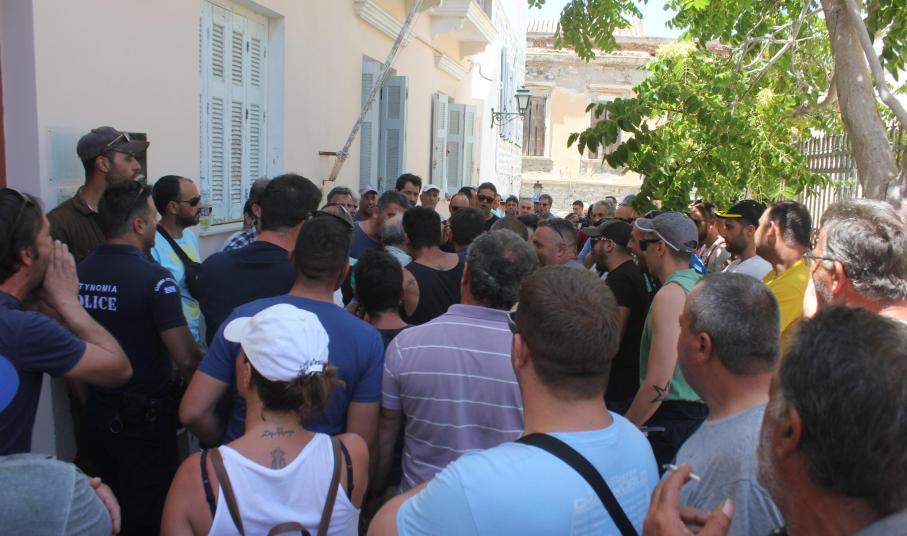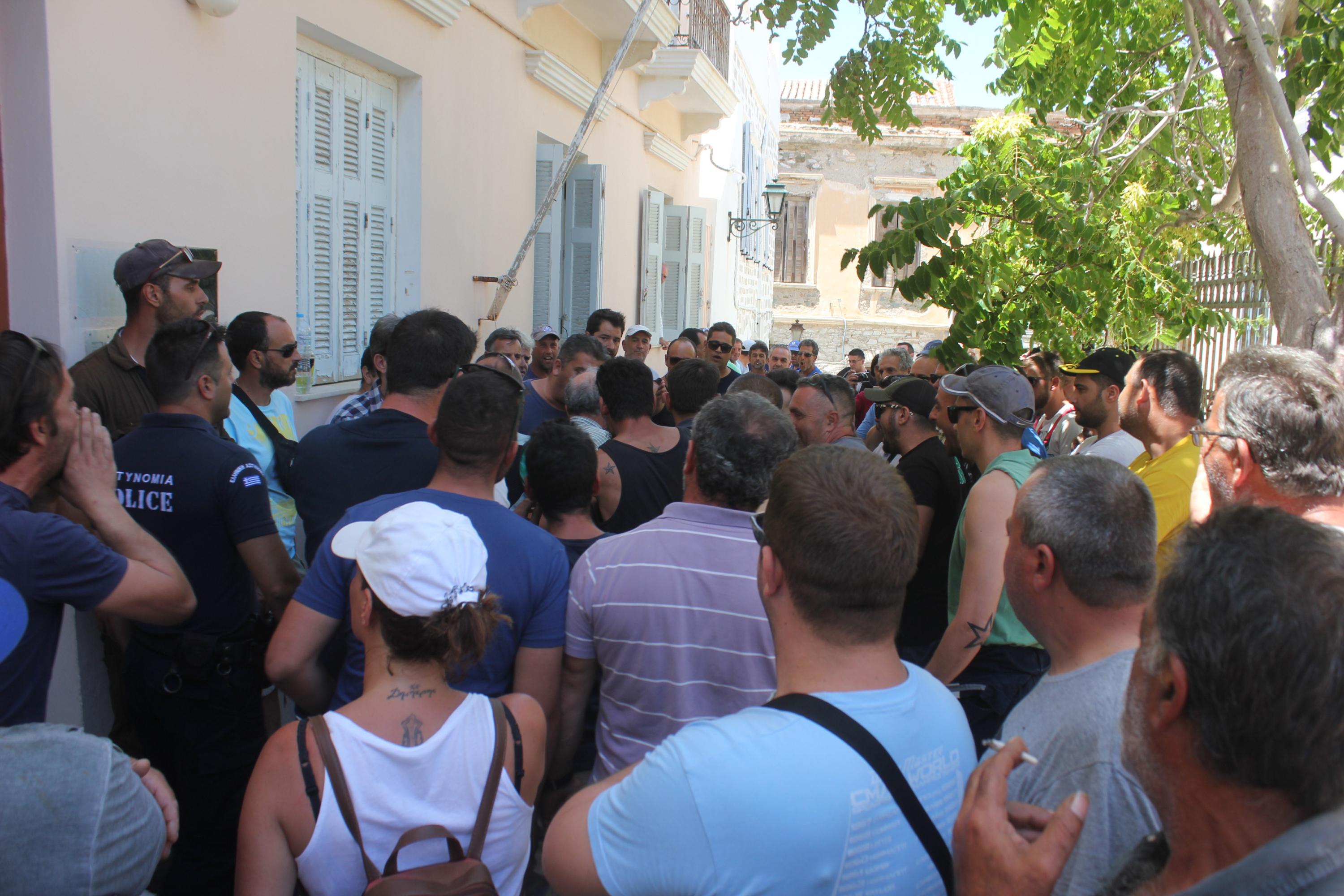 Αν και τα μέλη του Εργοστασιακού Σωματείου του Νεωρίου και οι σημερινοί εργαζόμενοι βρέθηκαν στην Επιθεώρηση Εργασίας Σύρου από νωρίς χθες το πρωί (πριν τις 10 π.μ), περιμένοντας υπομονετικά ως τις 12 να εμφανισθούν οι 14 πρώην εργαζόμενοι, προκειμένου να προχωρήσει η απαραίτητη διαδικασία, ωστόσο, λίγο μετά τις 12.30 εξέφρασαν έντονα την αγανάκτησή τους, καθώς ο Επιθεωρητής δεν είχε υπογράψει τα πρακτικά της μη έγκαιρης προσέλευσης των 14 προσώπων για να “κλείσει” η υπόθεση.