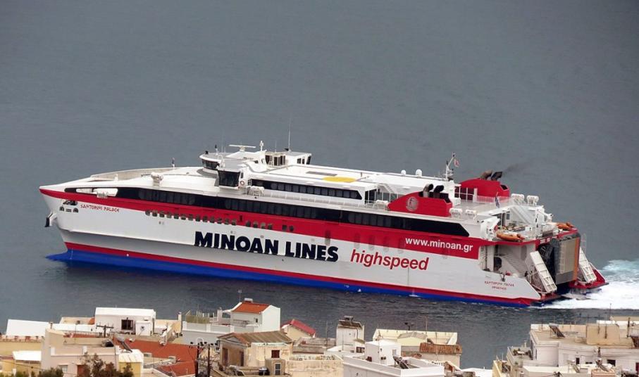 Οι Μινωικές Γραμμές γνωστοποιούν στο επιβατικό κοινό ότι την Μ. Τρίτη 23 Απριλίου 2019, το υπερσύγχρονο High Speed Catamaran SANTORINI PALACE θα πραγματοποιήσει έκτακτο δρομολόγιο με αναχώρηση από το λιμάνι του Πειραιά και με τελικό προορισμό το λιμάνι του Ηρακλείου, εκτελώντας τη γραμμή Πειραιάς-Σύρος-Μύκονος-Πάρος-Νάξος-Ίος-Σαντορίνη-Ηράκλειο, σύμφωνα με το παρακάτω πρόγραμμα (βλ. πίνακα).