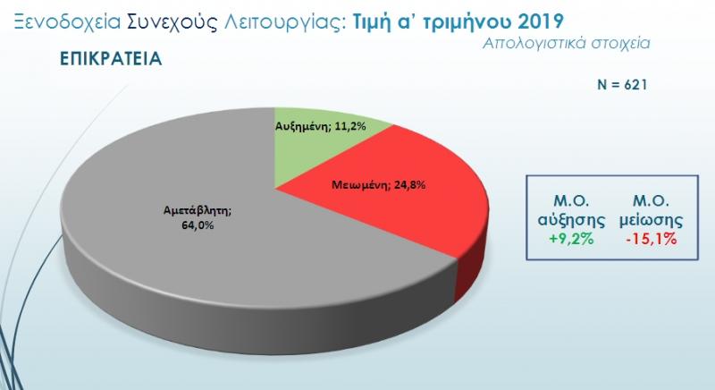 Συμπερασματικά όπως αποτυπώνεται στην Έρευνα Συγκυρίας και ειδικότερα στον απολογισμό α’ τριμήνου 2019, στα ξενοδοχεία συνεχούς λειτουργίας: