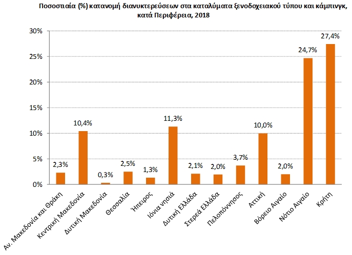 Περιφέρειες της Κρήτης (9,2% στις αφίξεις και 2,5% στις διανυκτερεύσεις), του Νοτίου Αιγαίου (7,5% στις αφίξεις και 5,3% στις διανυκτερεύσεις) και στην Αττική (3,9% στις αφίξεις και 3,0% στις διανυκτερεύσεις).