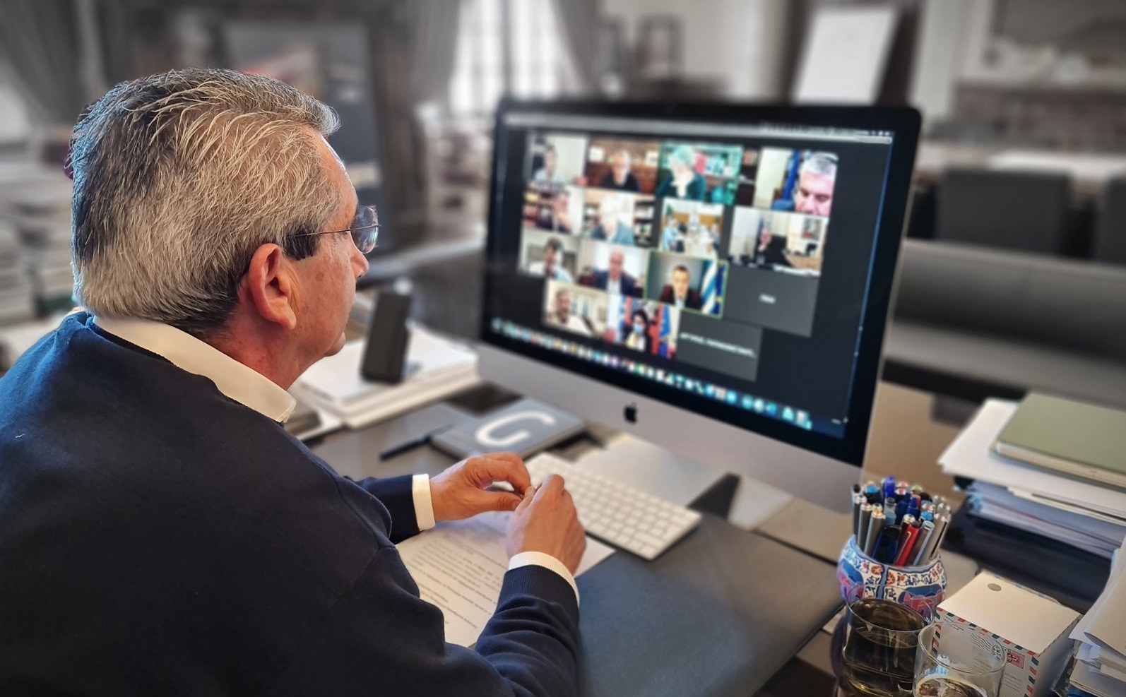 Σε σύσκεψη μέσω τηλεδιάσκεψης των 13 Περιφερειαρχών με τον Υφυπουργό Ανάπτυξης & Επενδύσεων Γιάννη Τσακίρη και τον ΓΓ Δημοσίων Επενδύσεων & ΕΣΠΑ, Δημήτρη Σκάλκο, συμμετείχε σήμερα, Δευτέρα, ο Περιφερειάρχης Νοτίου Αιγαίου, Γιώργος Χατζημάρκος.