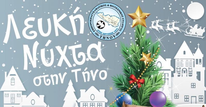 Το Σάββατο 26 Νοεμβρίου 2022 πλησιάζει. Η «Λευκή Νύχτα» του Εμποροεπαγγελματικού & Βιοτεχνικού Συλλόγου Τήνου, που με τόση ανυπομονησία περιμένουν μικροί και μεγάλοι, είναι προ των πυλών. Από τις 17:00 και μέχρι τις 24:00 θα νιώσουμε την μαγεία των Χριστουγέννων ανάβοντας το χριστουγεννιάτικο δέντρο του Δήμου Τήνου, διασκεδάζοντας με τις χριστουγεννιάτικες δραστηριότητες με απώτερο σκοπό πάντα να στηρίξουμε και να τονώσουμε την τοπική αγορά με τις αγορές μας.