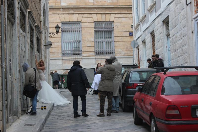Παρά το έντονο κρύο, η Δούκισσα Νομικού, πάντα λαμπερή και χαμογελαστή φωτογραφήθηκε σήμερα στα σκαλιά του Δημαρχείου στην πλατεία Μιαούλη, καθώς και στα σοκάκια της Ερμούπολης.