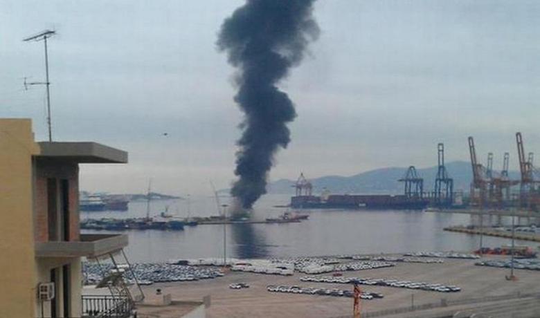 Αμέσως εκδηλώθηκε μεγάλη φωτιά στα εξωτερικά μέρη του πλοίου και συγκεκριμένα από την πλώρη, με πυκνό μαύρο καπνό να γεμίζει τον Πειραϊκό ουρανό.