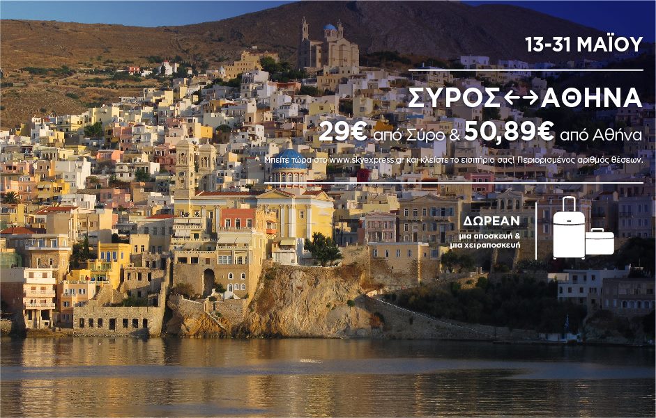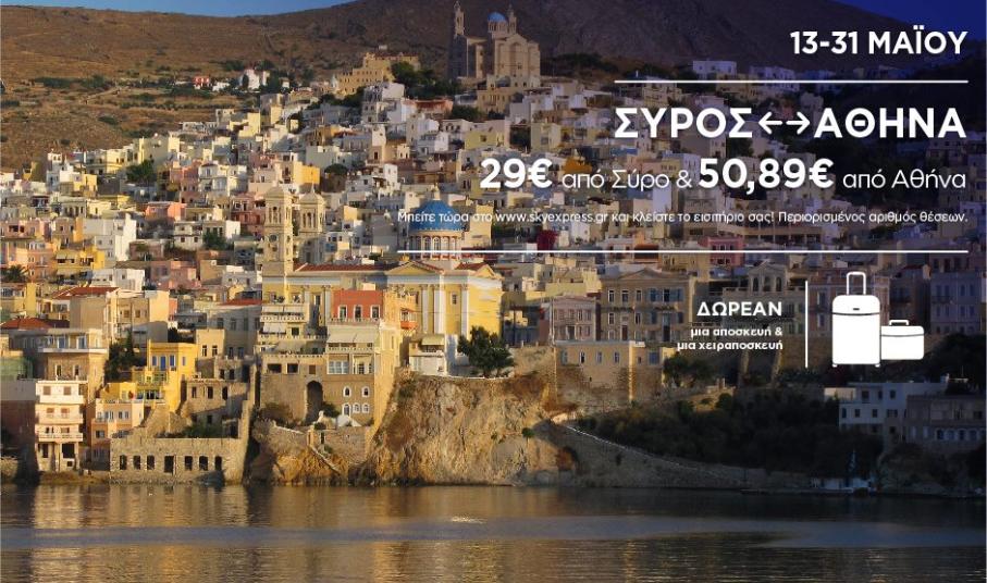 Η Sky Express ανακοινώνει προσφορές για εισιτήρια που θα εκδοθούν και για ταξίδια που θα πραγματοποιηθούν από και προς Αθήνα για τη περίοδο από 13 ως 31 Μαΐου προς Ικαρία, Πάρο, Κάρπαθο. Κύθηρα, Σύρο, Αστυπάλαια, Μήλο, Νάξο, με ναύλους που ξεκινούν από 29€.