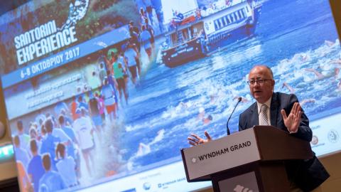 Χαιρετισμό απηύθυνε και ο Γενικός Γραμματέας του ΕΟΤ κ. Δημήτρης Τρυφωνόπουλος: «Πέρσι αθλητές από 28 χώρες, ανακάλυψαν το γιατί αυτό το νησί προσφέρει μοναδικές εμπειρίες στον επισκέπτη του. Φέτος, όσοι συμμετέχουν, θα το βιώσουν στην πράξη. Το συγκεκριμένο γεγονός εναρμονίζεται με τους στόχους του ΕΟΤ να προβάλλει διεθνώς προορισμούς της χώρας, καθώς και εναλλακτικές μορφές του Ελληνικού τουριστικού προϊόντος, που εξασφαλίζουν την αειφόρο ανάπτυξη με ορίζοντα 12μηνου. Μάλιστα μέσα από την κάλυψη δικτύων ενημέρωσης, όπως του FOX Sports, ενός από τα μεγαλύτερα αθλητικά τηλεοπτικά δίκτυα στον κόσμο, έχουμε την ευκαιρία να διαδώσουμε το μήνυμά μας σε αμέτρητους δυνητικούς επισκέπτες μας, πολύ περισσότερους από τα 28 και πλέον εκατομμύρια που υποδεχθήκαμε το 2016 στη χώρα».