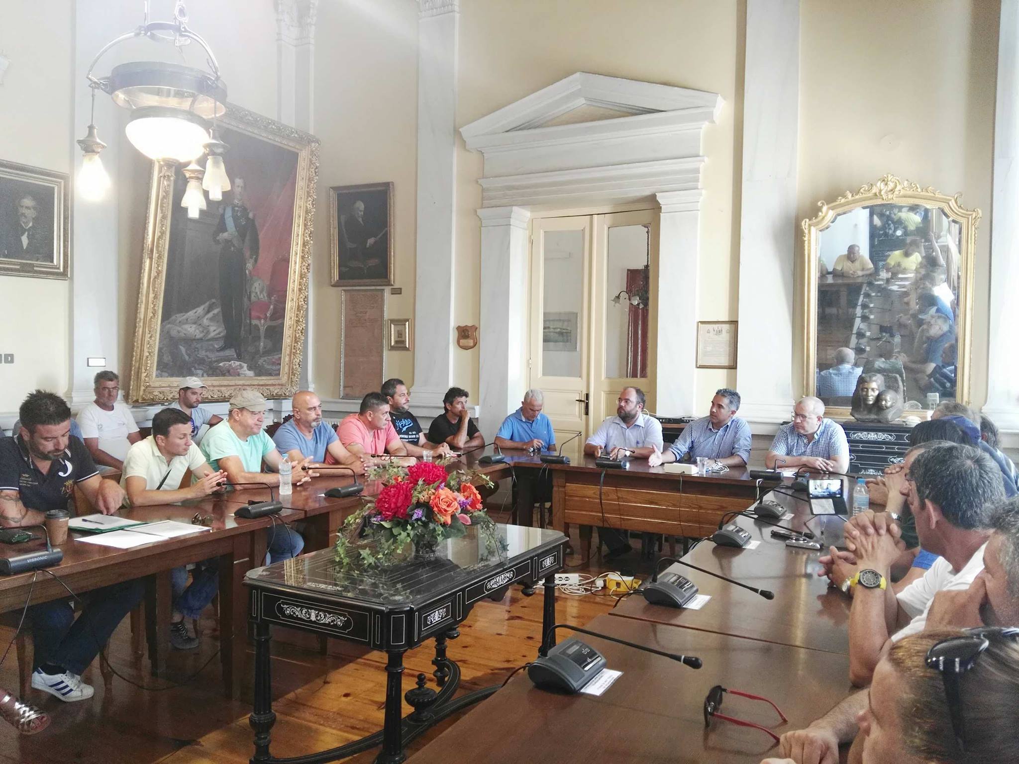 Πραγματοποιήθηκε σήμερα, Παρασκευή 18 Αυγούστου 2017 και ώρα 9:00 π.μ., στην Αίθουσα Συνεδριάσεων του Δημοτικού Συμβουλίου, προγραμματισμένη συνάντηση του Δημάρχου, κ. Γιώργου Μαραγκού, με μέλη της προσωρινής διοίκησης, αλλά και εργαζομένους του Εργοστασιακού Σωματείου του Νεωρίου. Εκ μέρους της Δημοτικής Αρχής, στη συνάντηση συμμετείχαν επίσης ο Αντιδήμαρχος Οικονομικών Υπηρεσιών κ. Αλέξης Αθανασίου, ο Αντιδήμαρχος Διοικητικών Υπηρεσιών κ. Δομένικος Σαγκινέτος και ο Πρόεδρος του Δημοτικού Συμβουλίου κ. Γιώργος Δούναβης.