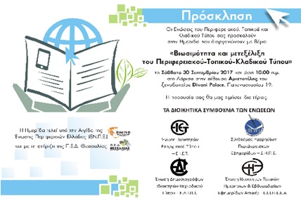 Οι Ενώσεις του Περιφερειακού, Τοπικού και Κλαδικού Τύπου διοργανώνουν ημερίδα με θέμα: «Βιωσιμότητα και Μετεξέλιξη του Περιφερειακού-Τοπικού και Κλαδικού Τύπου», που θα πραγματοποιηθεί το Σάββατο 30 Σεπτεμβρίου στη Λάρισα, στο ξενοδοχείο Divani Palace.