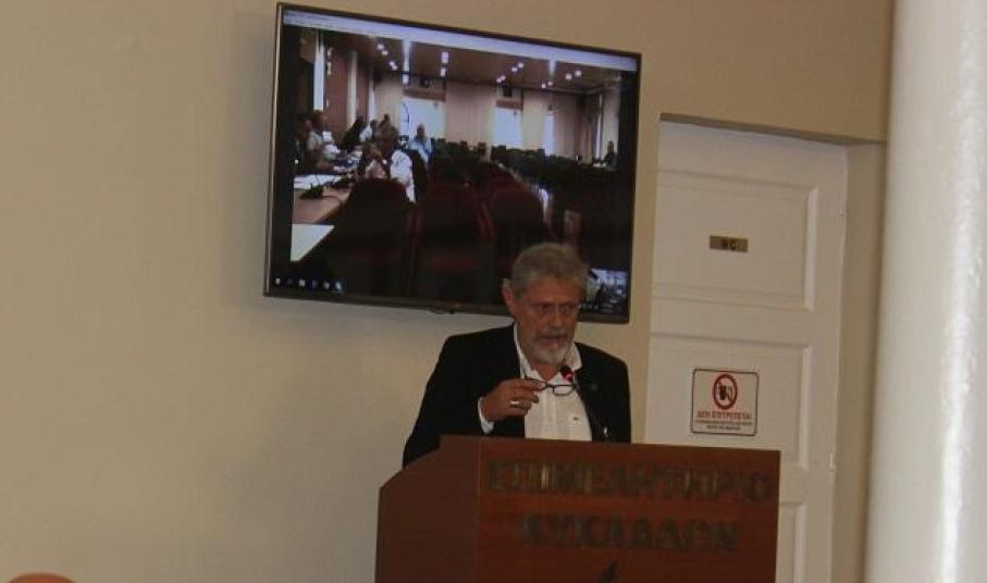 Ο πρόεδρος του Επιμελητηρίου Κυκλάδων, Γιάννης Ρούσσος, αναφέρθηκε στη διαρκή ενασχόληση του Επιμελητηρίου με το θέμα του Νεωρίου, τόσο γιατί η επιχείρηση είναι μέλος του Επιμελητηρίου, στο οποίο έχει οφειλή περί το 1 εκ. ευρώ, όσο και για τις οφειλές που διεκδικούν οι εργαζόμενοι, γεγονός που επηρεάζει την τοπική οικονομία.