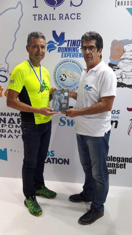 Σημαντική για το Σύλλογό μας και για το TINOS RUNNING EXPERIENCE ήταν η γνωριμία με τον πρόεδρο της διοργάνωσης PSILORITIS RACE κ. Ανδρέα Ανδρουλιδάκη. Οι διεθνείς αυτοί αγώνες γίνονται εδώ και 9 χρόνια στην Κρήτη με ιδιαίτερα μεγάλη επιτυχία. Το site των αγώνων τους έχει 260.000 επισκέπτες παγκοσμίως και στο facebook 10.000 φίλους. Οι δύο πρόεδροι συζήτησαν για τις δύο αθλητικές διοργανώσεις και για το εύρος τους. Το PSILORITIS RACE είναι ένας εδραιωμένος αγώνας με χιλιάδες συμμετοχές. Ο πρόεδρός του εντυπωσιάστηκε με την ανοδική πορεία των αγώνων μας και την προσπάθεια του Συλλόγου μας για την ανάδειξη του νησιού μας. Για το λόγο αυτό ο κ. Ανδρουλιδάκης κάλεσε τον κ. Τσιμέκη στο περίπτερο του PSILORITIS RACE και του παρέδωσε το μετάλλιο των αγώνων εις ένδειξη αναγνώρισης των προσπαθειών αυτών. Κατόπιν και ο κ. Τσιμέκης έδωσε το αναμνηστικό μετάλλιο των αγώνων μας και το βιβλίο ΤΗΝΙΑ 1895 στον κ. Ανδρουλιδάκη, αναφέροντας την ιστορία τους και εκπλήσσοντάς τον με αυτήν. Ένας μεγάλος και δυνατός σύλλογος γίνεται αρωγός του TINOS RUNNING EXPERIENCE.