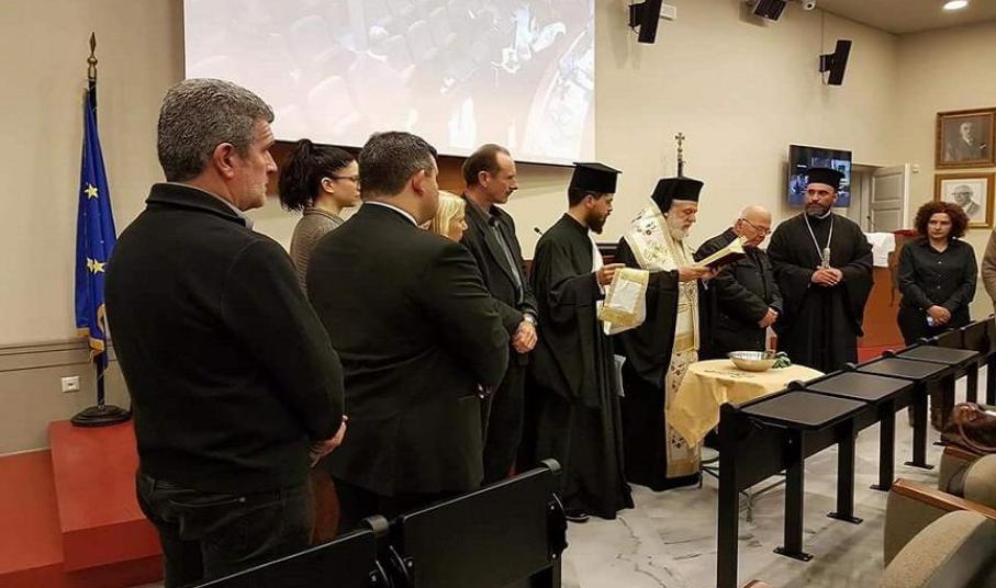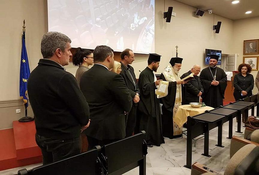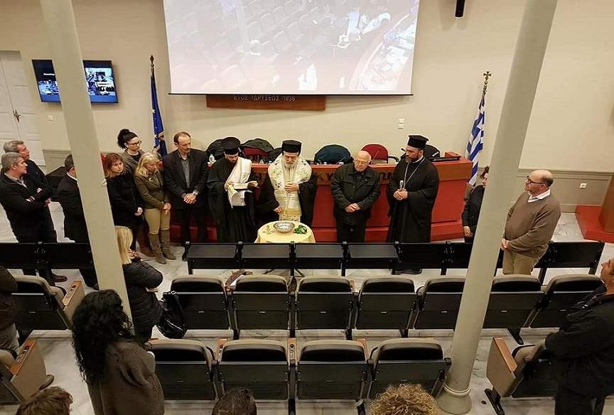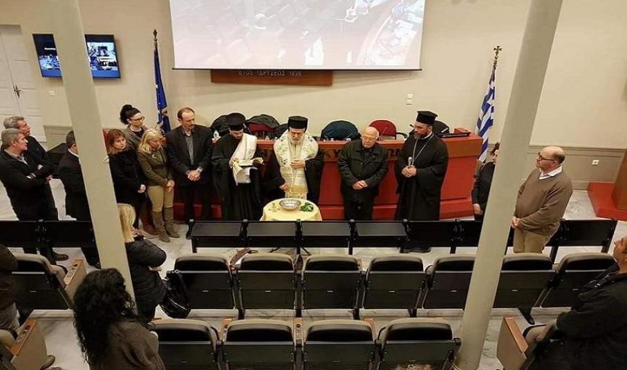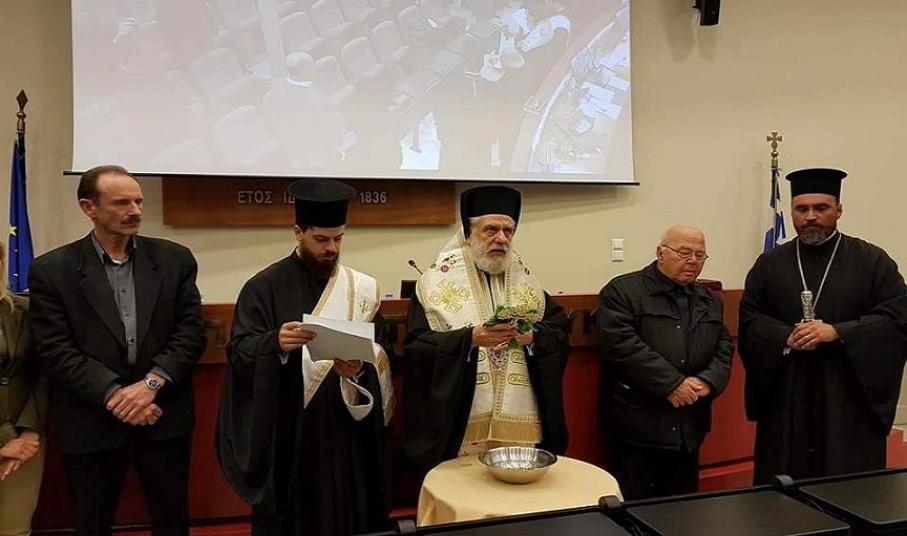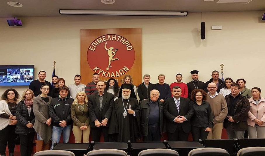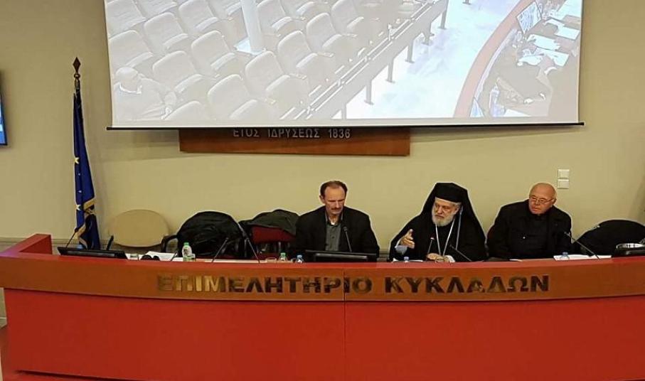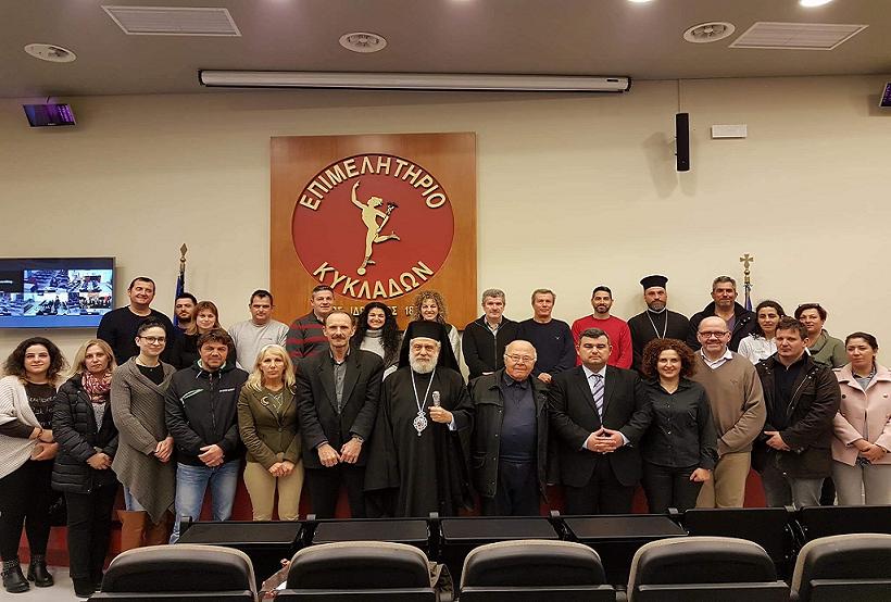 Με την ευχή και ευλογία του Σεβασμιωτάτου Μητροπολίτη Σύρου κ. Δωρόθεου Β΄, παρουσία του Πανοσιολογιοτάτου Πατέρα Αντώνιου Βουτσίνου, που εκπροσώπησε τον Σεβασμιότατο Επίσκοπο Καθολικών Πέτρο που απουσίαζε εκτός Σύρου, τελέσθηκε αγιασμός κατά τη χθεσινή τακτική συνεδρίαση του Διοικητικού Συμβουλίου του Επιμελητηρίου Κυκλάδων στην αίθουσα συνεδριάσεων του φορέα, όπου παρουσιάσθηκε μεταξύ άλλων θεμάτων, το νέο μοντέλο διοικητικής λειτουργίας του.