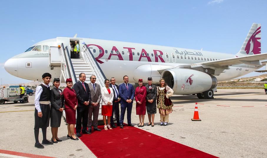 30 Μαΐου 2018 – Η Qatar Airways γιόρτασε σήμερα, στο Αεροδρόμιο Μυκόνου, την έναρξη της νέας της απευθείας πτήσης από τη Ντόχα, με την πρώτη πτήση να καλωσορίζεται με ενθουσιασμό από τους παρευρισκόμενους. Το νέο εποχικό δρομολόγιο στο δημοφιλέστερο νησί της Ελλάδας θα πραγματοποιεί τέσσερις πτήσεις την εβδομάδα από τη Ντόχα.