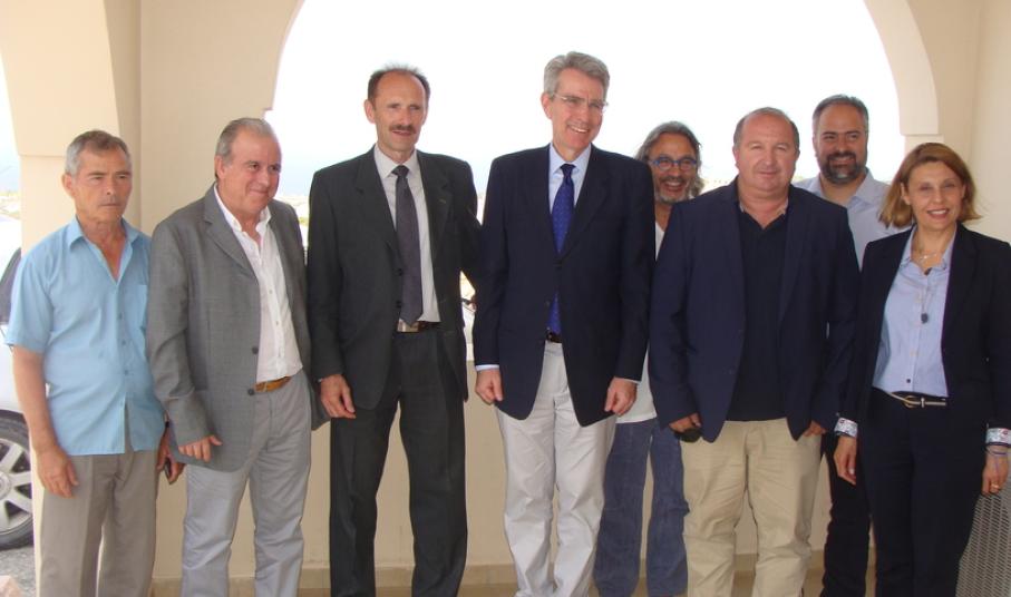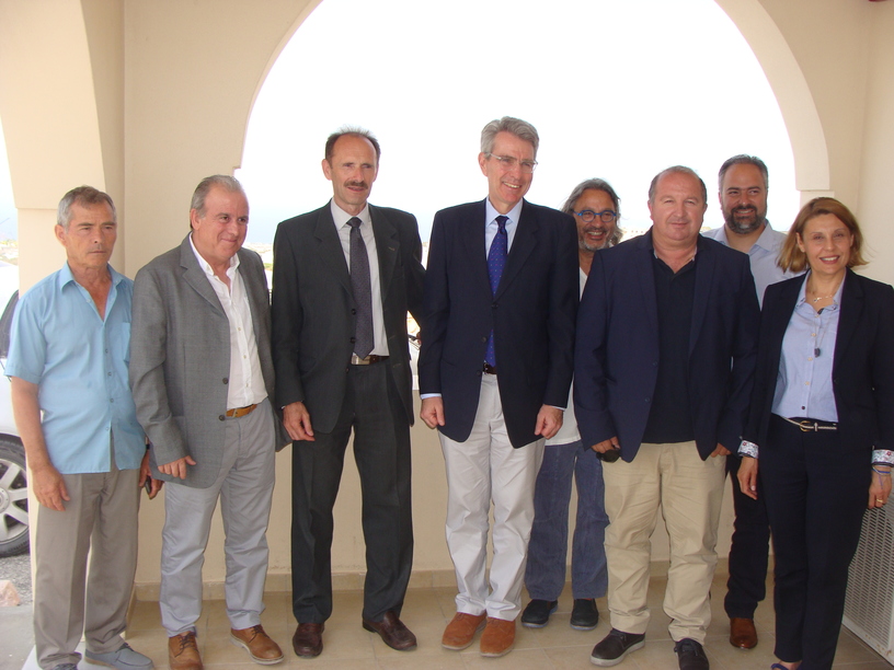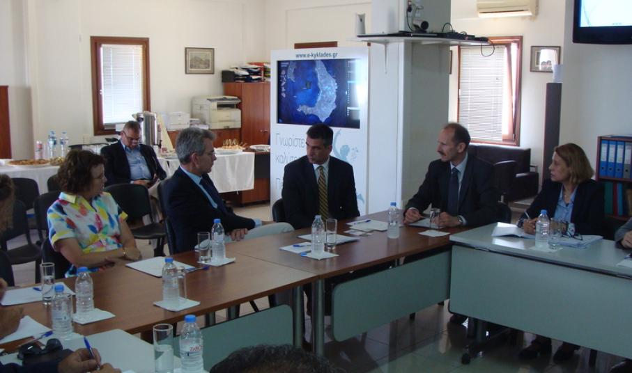 Συνάντηση εργασίας πραγματοποιήθηκε στο γραφείο του Επιμελητηρίου Κυκλάδων στη Σαντορίνη, την Παρασκευή 25 Μαΐου2018, με τον Αμερικανό Πρέσβη Geoffrey Pyatt και τον Πρόεδρο του Επιμελητηρίου Κυκλάδων, Γιάννη Ρούσσο, τα μέλη του Διοικητικού Συμβουλίου και με τους εκπροσώπους των Παραγωγικών Φορέων – Μελών του Επιμελητηρίου, από τη Σαντορίνη. Η συνάντηση πραγματοποιήθηκε, με πρωτοβουλία του Αμερικανού Πρέσβη, στο πλαίσιο της διήμερης επίσκεψης του στο νησί και αποτελεί συνέχεια της αρχικής συνάντησης γνωριμίας του Πρέσβη με το Επιμελητήριο Κυκλάδων στη Σύρο, πριν από ένα χρόνο, όπου είχε ενημερωθεί για το έργο και τις δράσεις του Επιμελητηρίου.