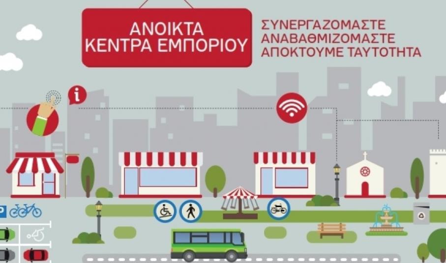Η Δράση «Ανοικτά Κέντρα Εμπορίου» στοχεύει στην υλοποίηση ενός συνόλου συνεκτικών και αλληλένδετων παρεμβάσεων σε εμπορικές περιοχές των πόλεων όλης της χώρας, με στόχο: