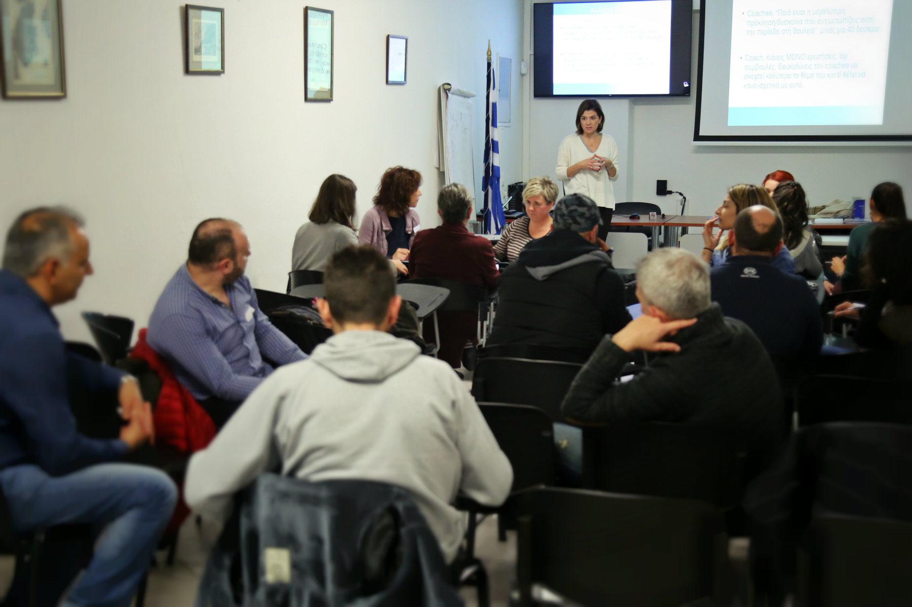 Οι συμμετέχοντες είχαν την ευκαιρία να δουλέψουν σε ομάδες των 2-3 ατόμων και να εξασκηθούν στο ρόλο του coach εφαρμόζοντας στην πράξη όσα αναλύθηκαν, με στόχο το coaching να γίνει τρόπος σκέψης και συμπεριφοράς τόσο στην επαγγελματική όσο και στην προσωπική επικοινωνία.