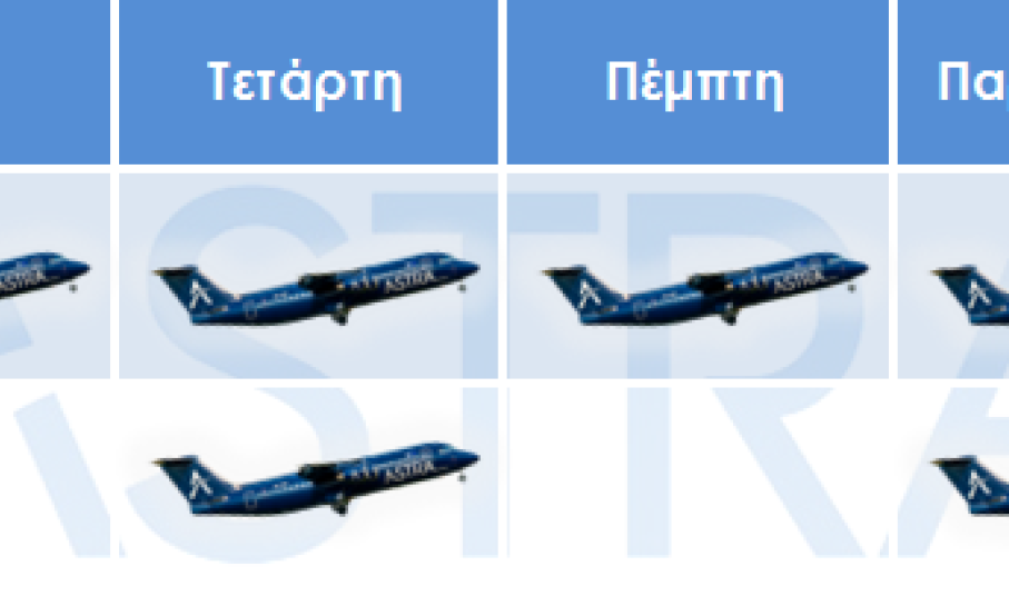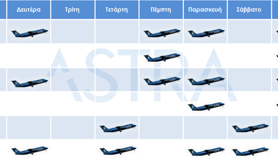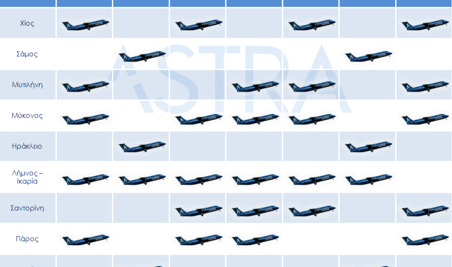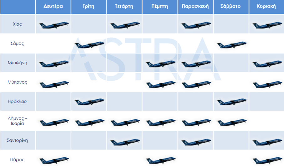 H Astra Airlines ανακοινώνει το θερινό πρόγραμμα πτήσεων 2019 (31 Μαρτίου - 26 Οκτωβρίου), με απευθείας πτήσεις προς Χίο, Σάμο, Μυτιλήνη, Πάρο, Σαντορίνη, Μύκονο, Λήμνο, Ικαρία, Ηράκλειο, Κοζάνη και Καστοριά.