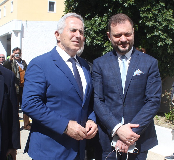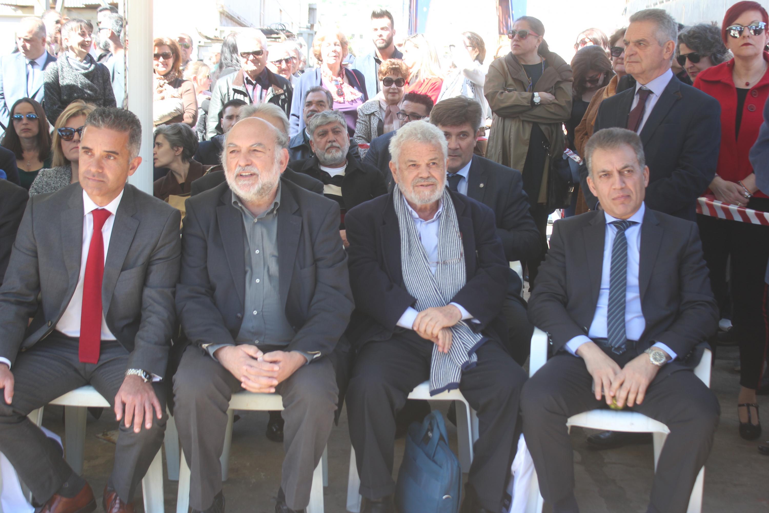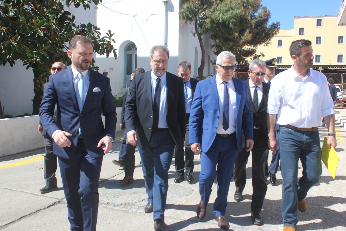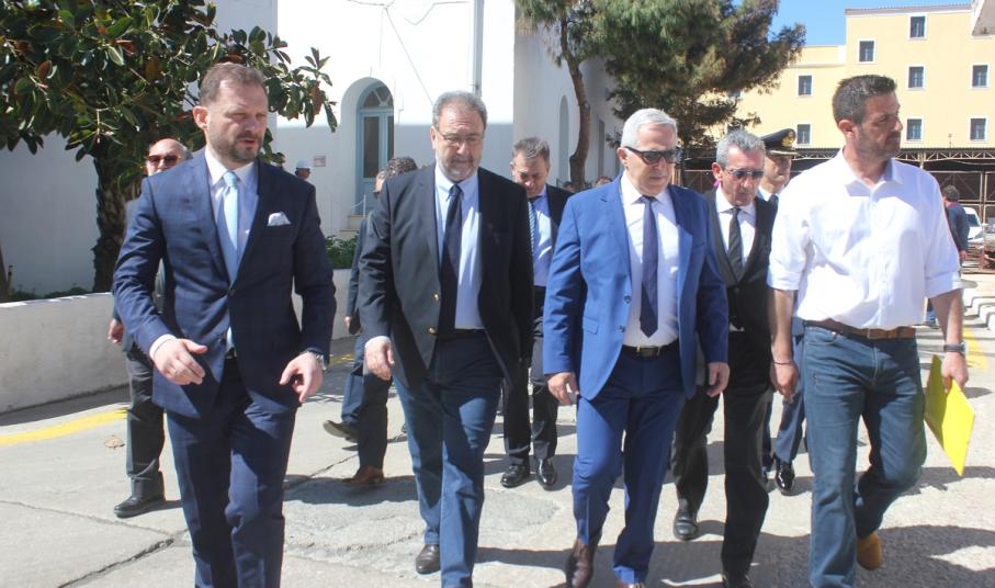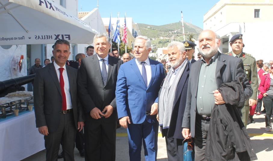 Στη Σύρο για τα επίσημα εγκαίνια που πραγματοποιήθηκαν το μεσημέρι της Κυριακής, στις εγκαταστάσεις του Νεωρίου, μετέβησαν μεταξύ άλλων ο Υπουργός Εθνικής Άμυνας, κ. Αποστολάκης και ο Υφυπουργός Οικονομίας, κ. Πιτσιόρλας, οι οποίοι συνοδεύονταν από τους κυβερνητικούς βουλευτές των Κυκλάδων (Μανιός, Συρμαλένιος).