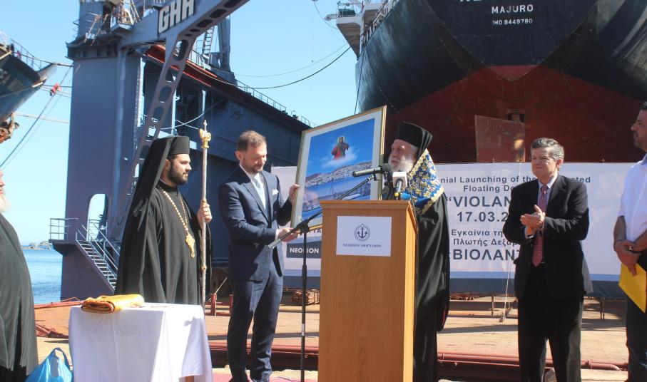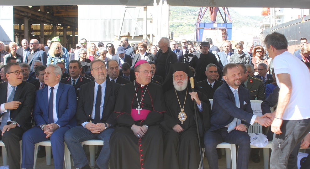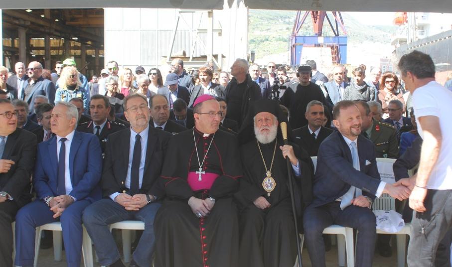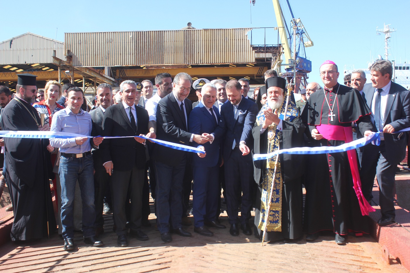 Εκπρόσωποι των τοπικών Αρχών και φορέων καθώς επίσης και ο Σεβασμιώτατος Μητροπολίτης Σύρου, κ. Δωρόθεος Β΄ όπως και ο Καθολικός Επίσκοπος Σύρου, Σεβ. π. Πέτρος Στεφάνου έδωσαν το “παρών”, συμμετέχοντας στην εκδήλωση που πραγματοποιήθηκε, στο πλαίσιο της οποίας οι κυβερνητικοί εκπρόσωποι επεσήμαναν τη σημασία της σταδιακής αναγέννησης της ναυπηγοεπισκευής στη χώρα, τονίζοντας παράλληλα και τη συνεργασία με τις ΗΠΑ σε γεωστρατηγικό/ γεωπολιτικό επίπεδο.