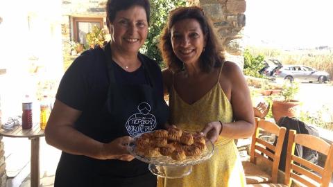 Στην Τήνο, η διάσημη ελληνοαμερικανίδα σεφ βρέθηκε στις 12 Οκτωβρίου, όπου είχε την ευκαιρία να μαγειρέψει μαζί με τοπικούς σεφ, χρησιμοποιώντας Τηνιακά προϊόντα, αλλά και να ξεναγηθεί στους χώρους της Σχολής και του Μουσείου, όπως επίσης και να γνωρίσει και στο κοινό της, την τηνιακή μαρμαροτεχνία.