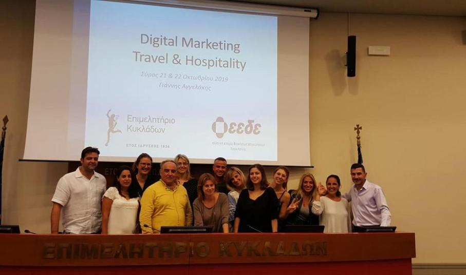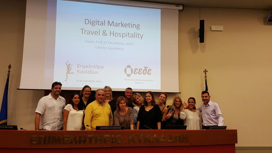 Τα πρώτα σεμινάρια με θέμα το Digital Marketing και εισηγητή τον κ. Γιάννη Αγγελάκη πραγματοποιήθηκαν στη Σύρο και την Πάρο και συμμετείχαν μέλη από διάφορους κλάδους της επιχειρηματικής κοινότητας των νησιών της Σύρου, Τήνου, Μυκόνου, Σερίφου, Πάρου και Αντίπαρου, τα οποία θα λάβουν τη σχετική πιστοποίηση.