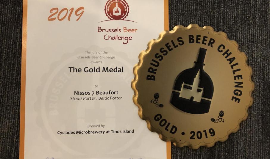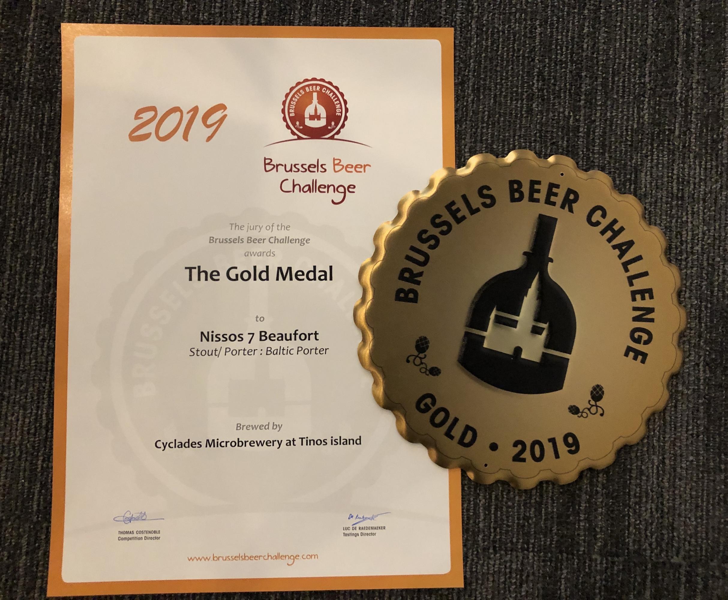 Χρυσό μετάλλιο για τη «ΝΗΣΟΣ 7 Μποφόρ» στην κατηγορία των «Baltic Porters», των Porters με υψηλό αλκοόλ, στο διαγωνισμό «Brussels Beer Challenge, 2019».