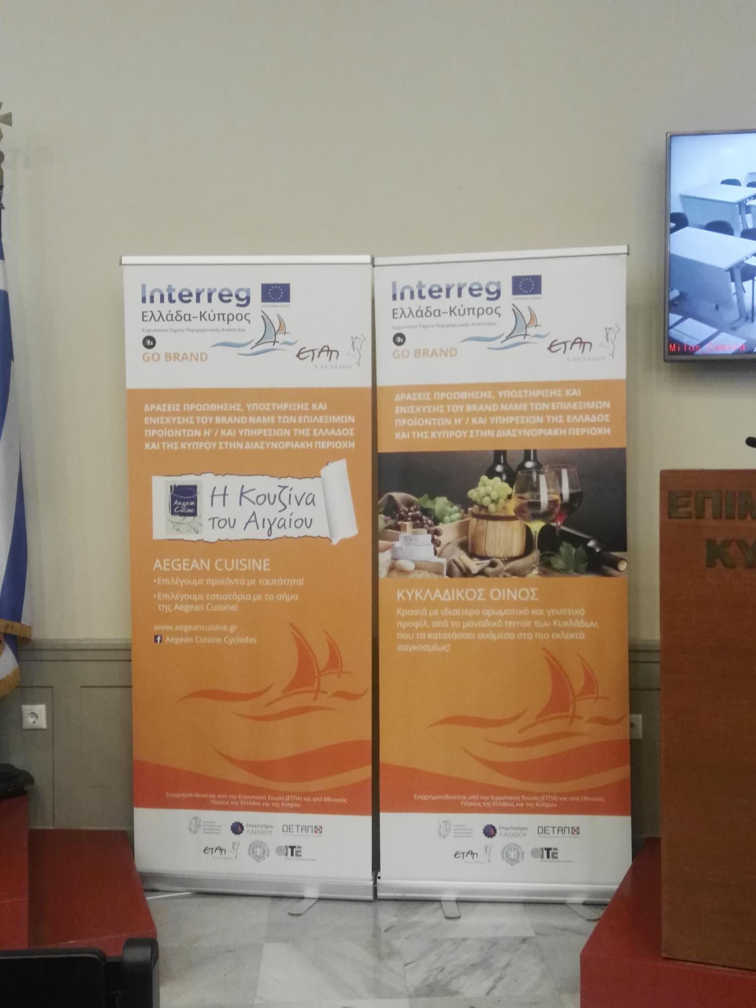 Ειδικότερα, ο κ. Μαραγκός εξήγησε αρχικά για την πράξη Go Brand πως εντάσσεται στο πλαίσιο του προγράμματος εδαφικής συνεργασίας Interreg V-A Ελλάδα – Κύπρος 2014 – 2020. “Είναι μία δράση που απλώνεται σε πέντε περιοχές και είναι οι Κυκλάδες, η Χίος (Β. Αιγαίο), τα Δωδεκάνησα, η Κρήτη και η Κύπρος”. Σύμφωνα με όσα πρόσθεσε, “σκοπός του έργου είναι η στήριξη, η προβολή και η ανάδειξη του brand name των προϊόντων αγροδιατροφής, αλλά και των υπηρεσιών που έχουν σχέση με τον τουρισμό είτε άμεσα, είτε έμμεσα”. Σε αυτό το πλαίσιο, τόνισε πως, κάθε περιοχή από τις πέντε επιλέξιμες, επέλεξε δύο βασικές δραστηριότητες, προκειμένου να ενισχύσει την εξωστρέφειά τους. Ενδεικτικά ανέφερε πως “η Κύπρος για παράδειγμα επέλεξε παραδοσιακά προϊόντα και το χαρούπι, η Κρήτη το λάδι και το μέλι, οι Κυκλάδες τον Κυκλαδικό οίνο και το δίκτυο Aegean Cuisine που ήδη υπάρχει”, αλλά που όπως υπογράμμισε, “μέσα από αυτό το πρόγραμμα μπόρεσε να βγει και προς το εξωτερικό, να ενισχύσει την εξωστρέφειά του ακόμη περισσότερο”.