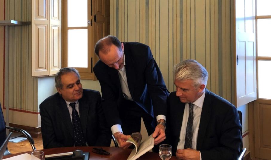 Το Επιμελητήριο Κυκλάδων επισκέφθηκε τη Δευτέρα 25 Φεβρουαρίου 2020 ο Πρέσβης της Γερμανίας στην Ελλάδα κ. Έρνστ Ράιχελ, στο πλαίσιο της επίσκεψής του στη Σύρο και των συναντήσεών του με φορείς του νησιού, συνοδευόμενος από τον Πρόξενο της Γερμανίας στη Σύρο κ. Νικόλαο Γάσπαρη, τους οποίους υποδέχτηκαν ο Πρόεδρος του Επιμελητηρίου Κυκλάδων, μέλη της Διοικητικής Επιτροπής καθώς και στελέχη του Επιμελητηρίου.