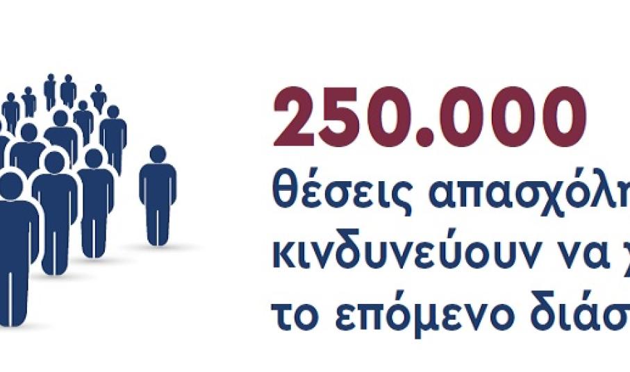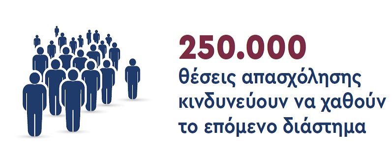 Με βάση τα στοιχεία αυτά εκτιμάται ότι κινδυνεύουν να χαθούν 150.000 θέσεις μισθωτής εργασίας, ενώ εάν συνυπολογίσουμε και το εύρημα ότι 1 στις 7 επιχειρήσεις δηλώνουν πως ενδέχεται να διακόψουν την επιχειρηματική τους δραστηριότητα, τότε ο κίνδυνος απώλειας των συνολικών θέσεων απασχόλησης (αυτοαπασχολούμενοι, εργοδότες και εργαζόμενοι) εκτιμάται στις 250.000.