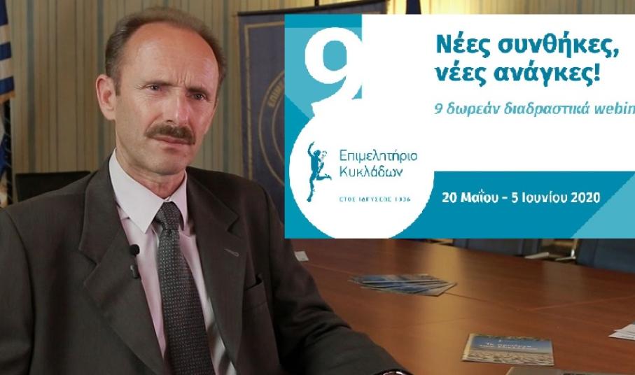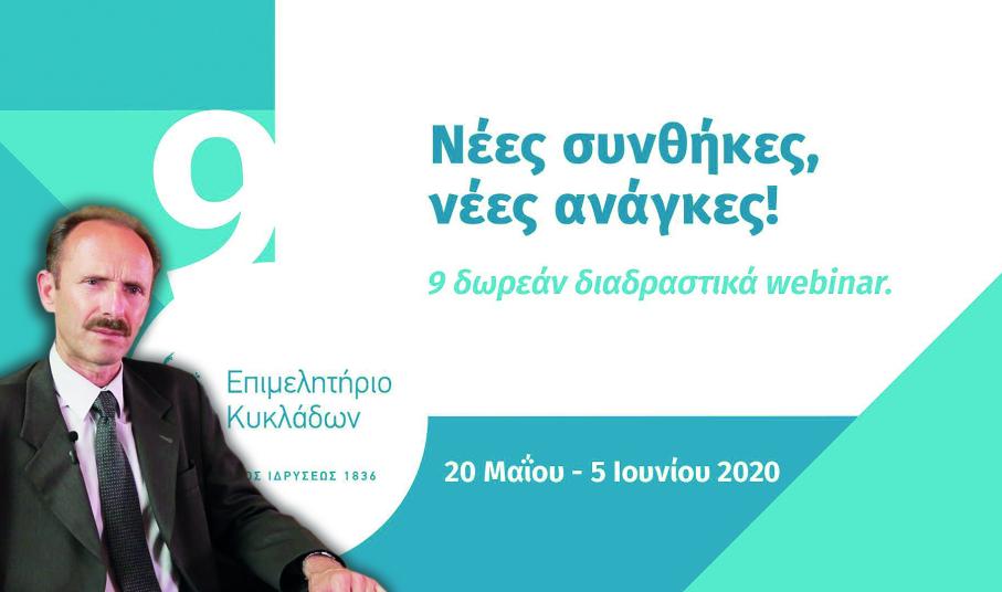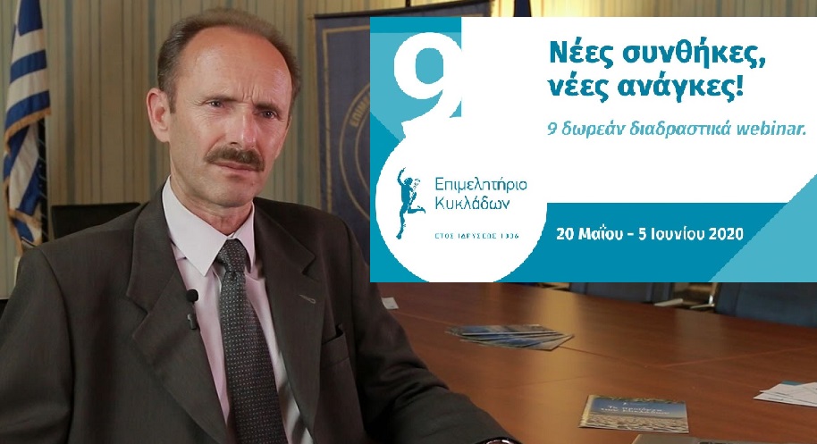 Την επιχειρηματική προσαρμογή στα νέα δεδομένα που διαμορφώνει ο κορωνοϊός στον Τουρισμό αλλά και σε κάθε κατηγορία της οικονομίας επιδιώκει το Επιμελητήριο Κυκλάδων, διοργανώνοντας εννέα νέα δωρεάν εκπαιδευτικά διαδραστικά webinar για όλους τους ενδιαφερόμενους στον νησιωτικό νομό.