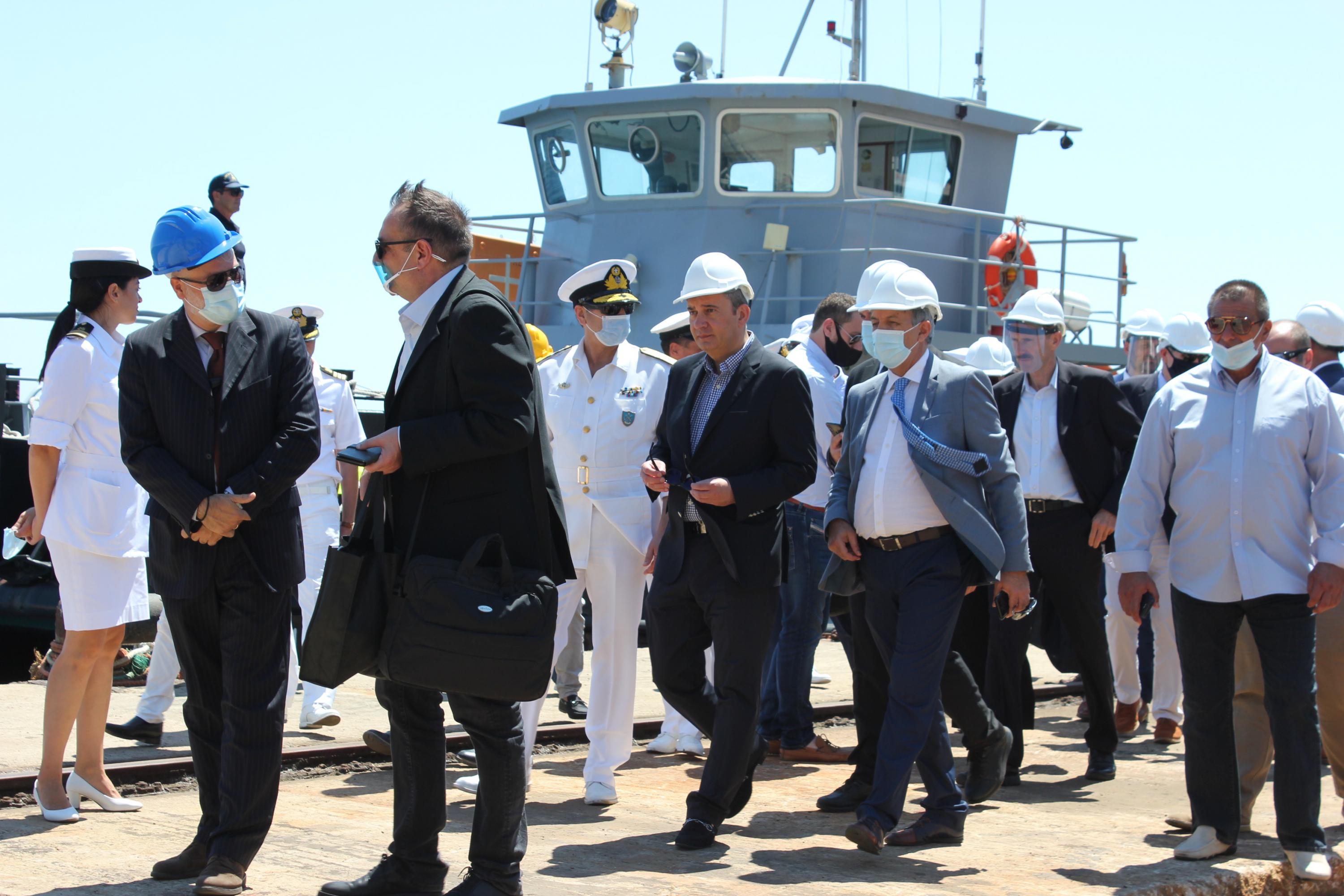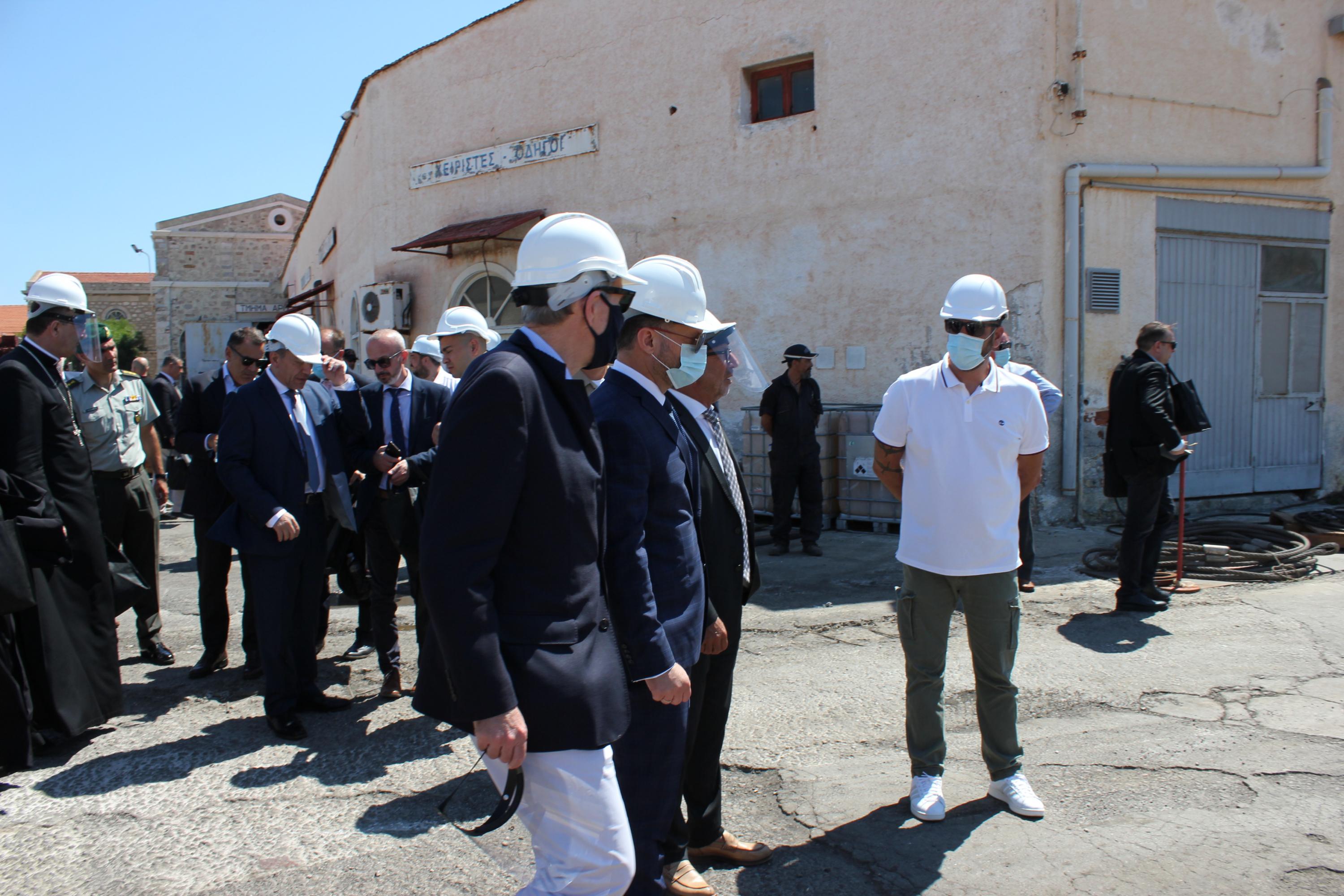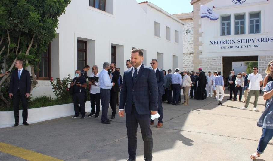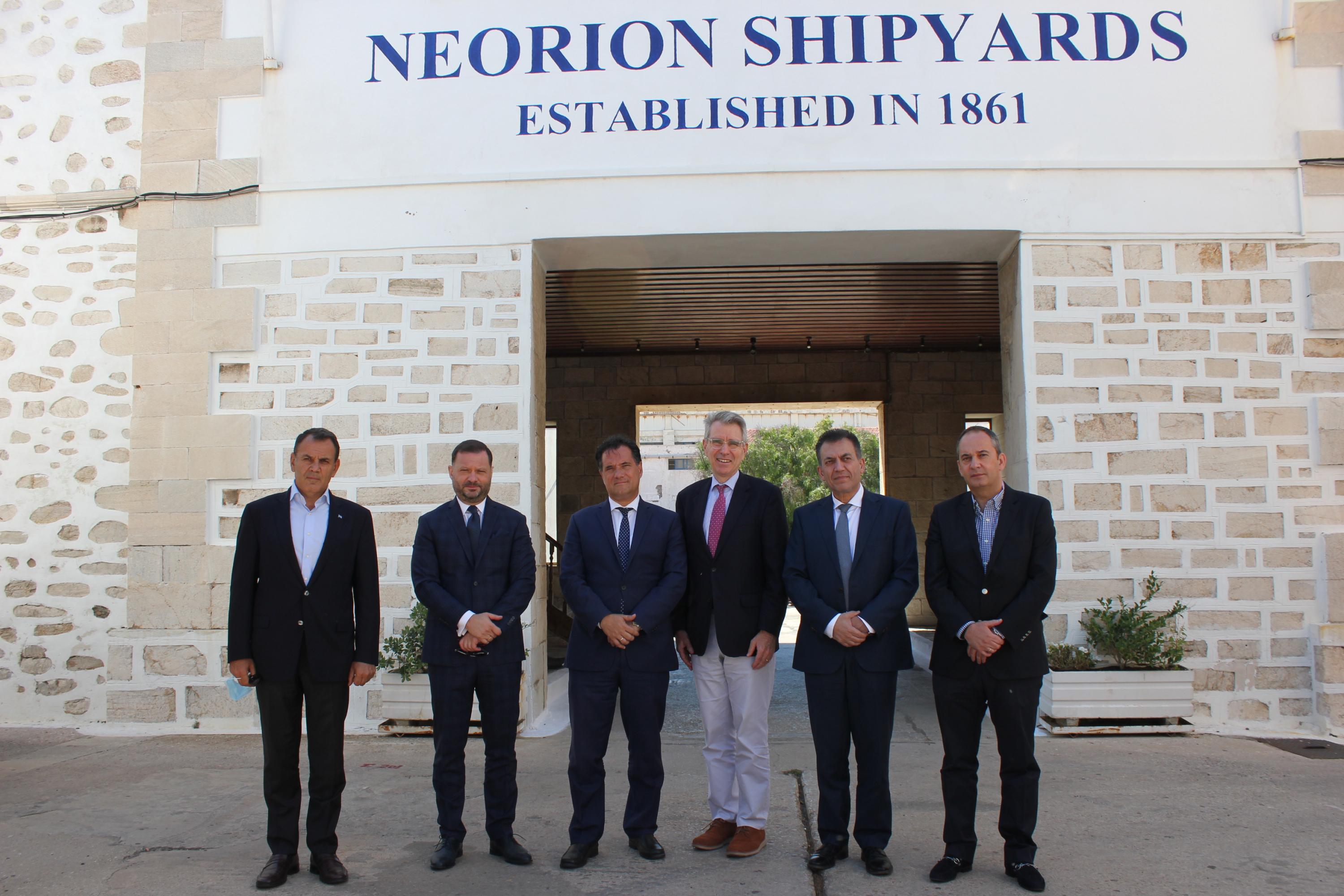 Στο πλαίσιο της ολοκλήρωσης της μεταβίβασης του Νεωρίου στη νέα Διοίκηση της ONEX, ο Υπουργός Ανάπτυξης, Άδωνις Γεωργιάδης, ο Υπουργός Εργασίας, Γιάννης Βρούτσης, ο Υπουργός Εθνικής Άμυνας, Νίκος Παναγιωτόπουλος και ο Υπουργός Ναυτιλίας, Γιάννης Πλακιωτάκης μετέβησαν στο νησί και στις εγκαταστάσεις του ναυπηγείου, προκειμένου να πληροφορηθούν αναλυτικά για τα βήματα προόδου, αλλά και για τη στόχευση του Πάνου Ξενοκώστα να καταστεί το ναυπηγείο της Σύρου πιο φιλικό στο περιβάλλον.