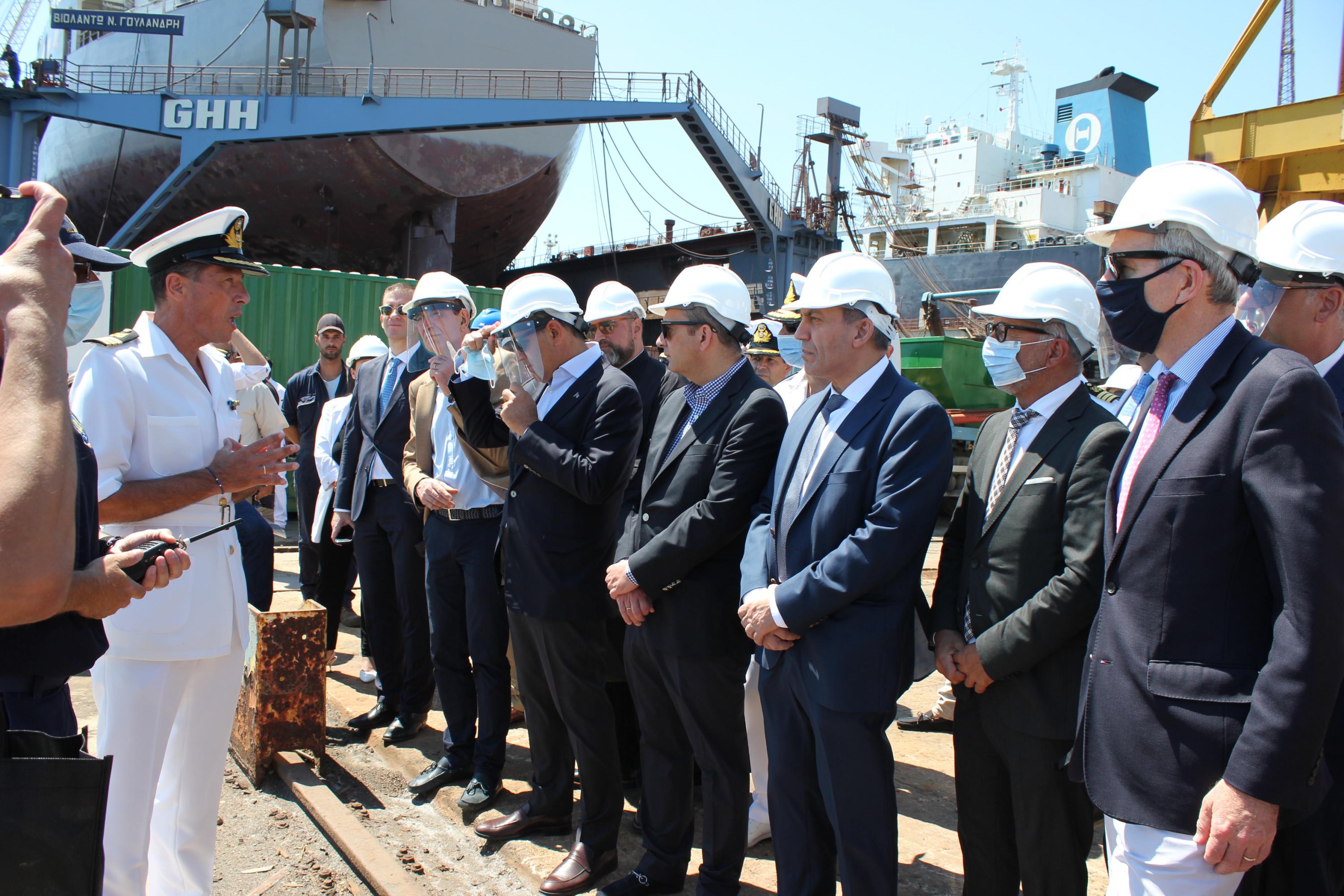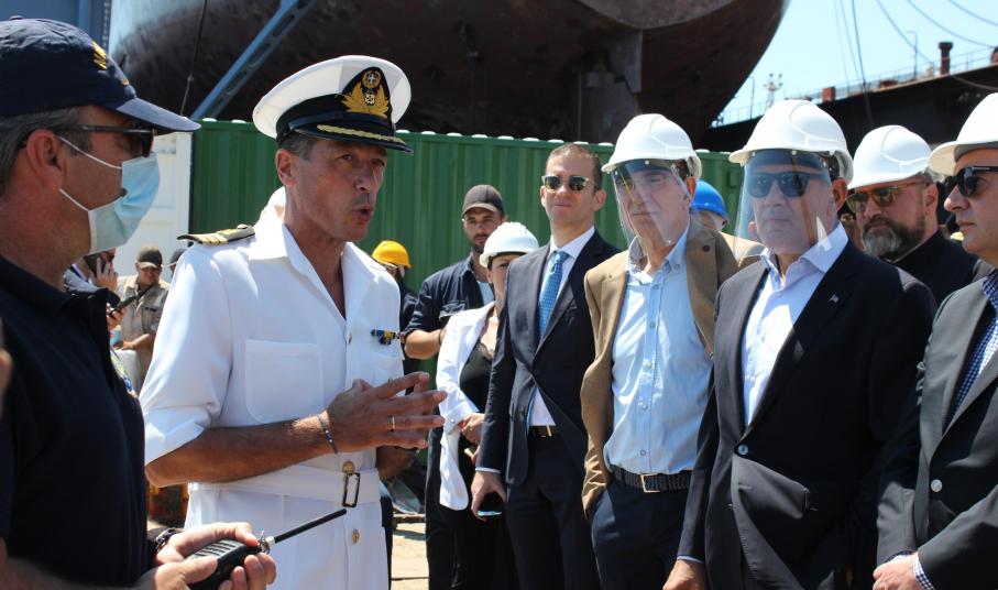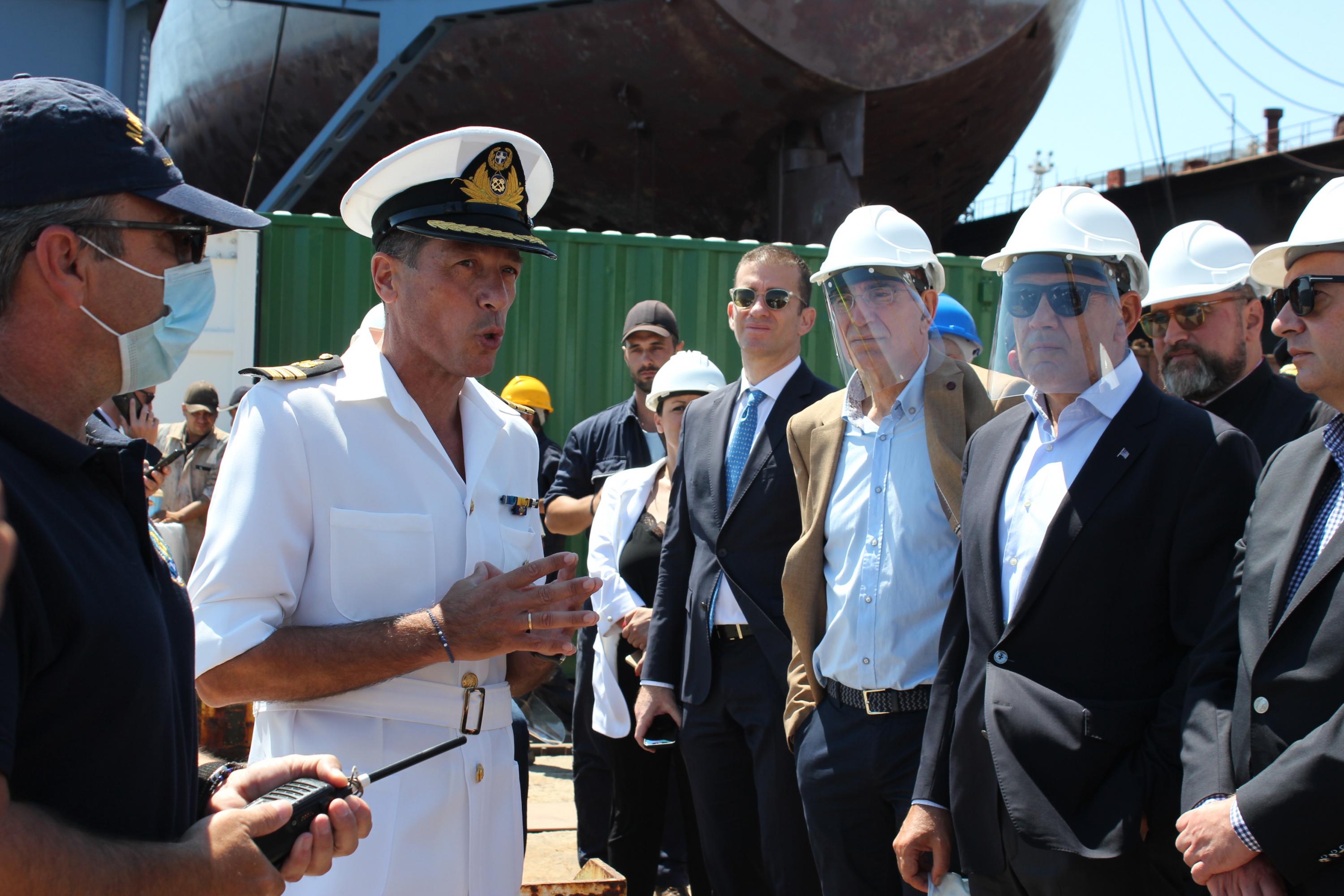Η είσοδος των ναυπηγείων Ελευσίνας που διεκπεραιώνεται αυτή τη στιγμή διευρύνει ακόμη περισσότερο τις προοπτικές. Αυτή η κίνηση ενδιαφέρει και εμάς, διότι οι ναυπηγικές εργασίες και σε πλοία του Πολεμικού Ναυτικού αυτή τη στιγμή είναι άκρως απαραίτητες δεδομένων των συνθηκών. (...) Είμαστε εδώ σε μία σχέση ανοικτή, ειλικρινή και σε μία σχέση συνεργασίας”.