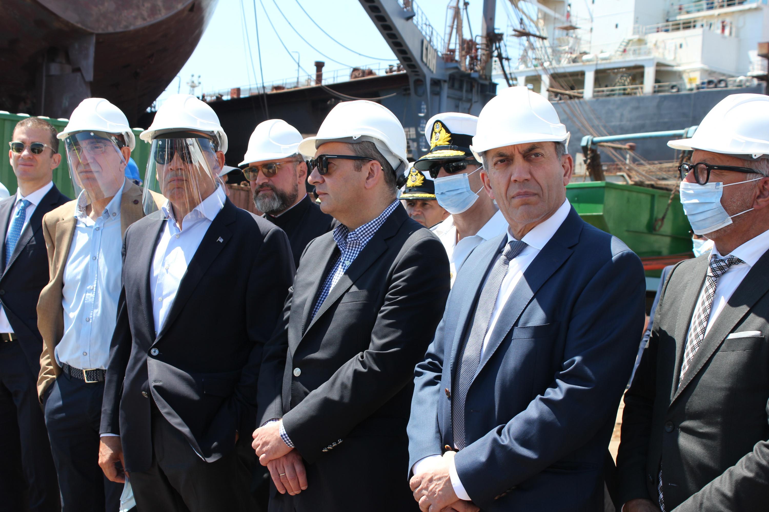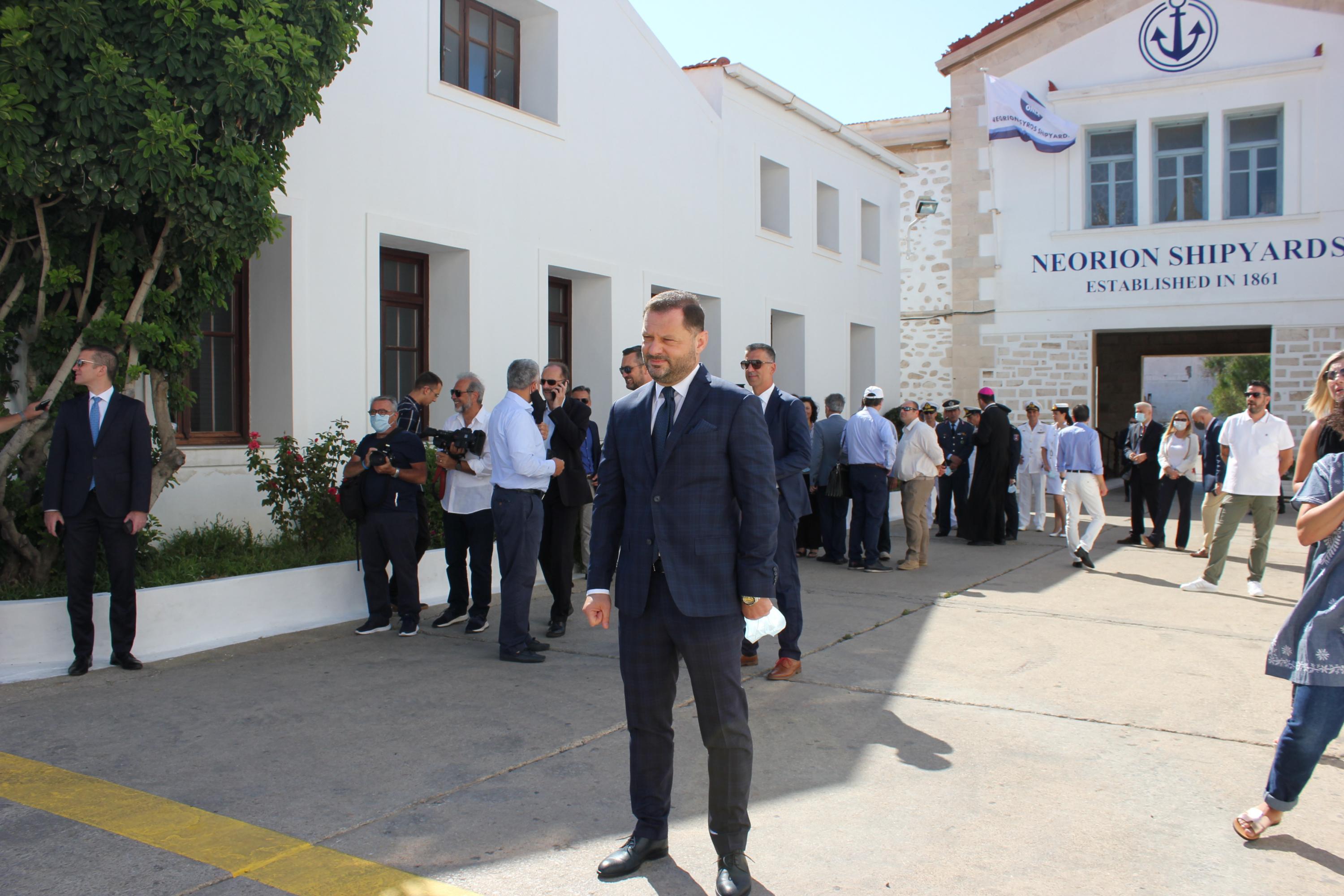 Τέλος, ο Υπουργός Ναυτιλίας και Νησιωτικής Πολιτικής, Γιάννης Πλακιωτάκης, υπογράμμισε πως, Η Ελλάδα είναι κορυφαία παγκόσμια δύναμη στο χώρο της ναυτιλίας και οφείλει να έχει αντίστοιχη ναυπηγική βιομηχανία. Η κυβέρνηση στηρίζει την επίτευξη του στόχου αυτού και σημειώνουμε με ιδιαίτερη ικανοποίηση τη διαρκή ανάπτυξη των δυνατοτήτων του ναυπηγείου της Σύρου, που κινείται σε αυτήν ακριβώς την κατεύθυνση”. Ο ίδιος δεσμεύθηκε απέναντι στον κ. Ξενοκώστα πως, Θα συνεχίσουμε να στηρίζουμε τους στόχους σας”.