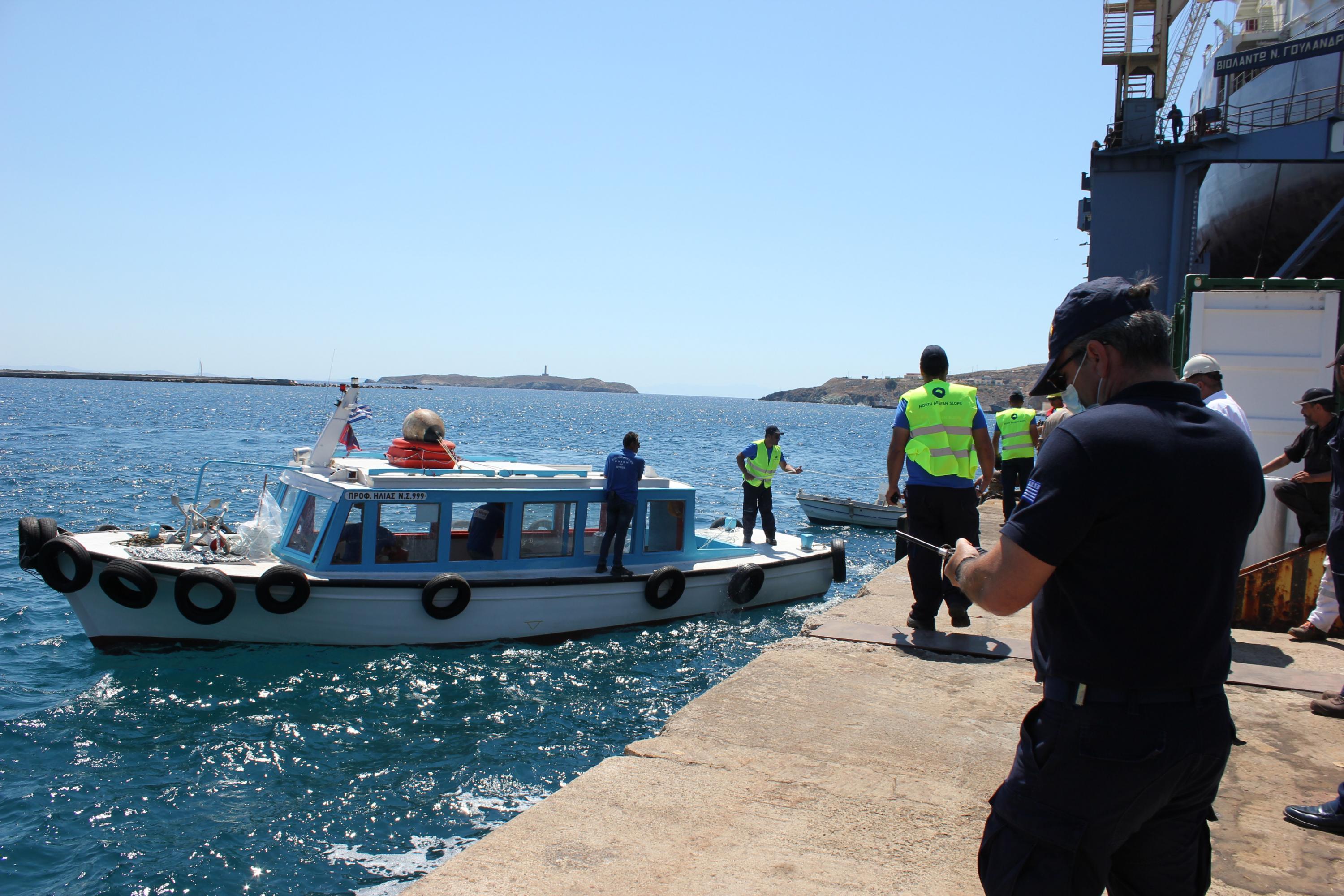 Σημειώνεται πως ακολούθησε επίδειξη άσκησης απορρύπανσης της θάλασσας με τη συνδρομή του Λιμενικού Σώματος και υπό τις οδηγίες του Λιμενάρχη, Γιάννη Βαμβακούση, στην οποία συμμετείχαν ενεργά και οι καβοδέτες του λιμένα Σύρου με δικό τους σκάφος.