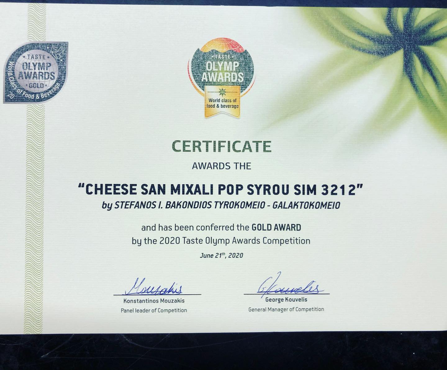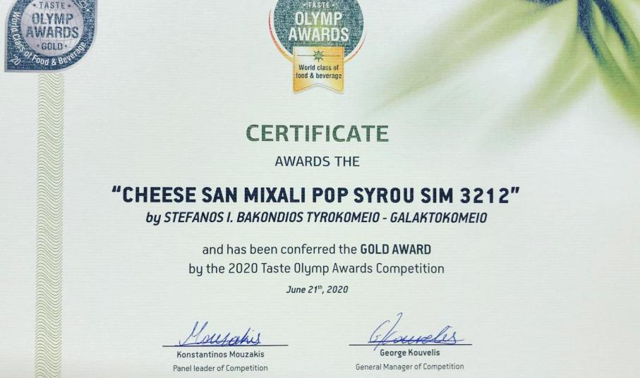 Ο διεθνής διαγωνισμός εξειδικευμένης αξιολόγησης ‘’Taste Olymp Awards’’ με τα βραβεία ανώτερης γεύσης τροφίμων και ποτών, ανακοίνωσαν τα βραβευμένα προϊόντα για το 2020 τόσο για χώρες της Ελλάδας όσο και του εξωτερικού. Ο διαγωνισμός, ο οποίος πραγματοποιήθηκε για 5η συνεχή χρονιά, έλαβε χώρα στην Αθήνα από τις 19 έως τις 21 Ιουνίου, ενώ η αξιολόγησή τους έγινε από το πολυάριθμο Olymp Awards Chefs’ Jury Panel, με επικεφαλής τον Κωνσταντίνο Μουζάκη (Μr. Chef Europe 2015, Director Gastronomy Club Unesco, Member WACS). Στη διαδικασία συμμετείχαν επαγγελματίες της γεύσης, όπως διακεκριμένοι chef και γευσιγνώστες υπό την αιγίδα (μεταξύ άλλων) του Υπουργείου Αγροτικής Ανάπτυξης και Τουρισμού και της κεντρικής Ένωσης Επιμελητηρίων Ελλάδος.