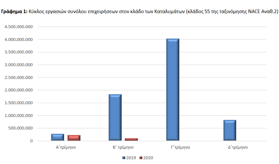 Προκειμένου να αναγνωστούν σωστά τα παρακάτω δεδομένα της ΕΛΣΤΑΤ, υπενθυμίζεται, ότι στις 12 Μαρτίου ανεστάλη η λειτουργία όλων των χώρων διασκέδασης, ενώ την επομένη ανακοινώθηκε αναστολή λειτουργίας, μεταξύ άλλων, για καφετέριες, μπαρ και εστιατόρια. Επίσης, στις 19 Μαρτίου το Υπουργείο Τουρισμού ανακοίνωσε την αναστολή λειτουργίας του συνόλου σχεδόν των ξενοδοχείων και καταλυμάτων. Μεσολάβησε το διάστημα του περιορισμού της κυκλοφορίας πολιτών (lockdown) από τις 23 Μαρτίου έως τις 4 Μαΐου. Στις 25 Μαΐου επαναλειτούργησαν οι επιχειρήσεις εστίασης, ενώ την 1η Ιουνίου επαναλειτούργησαν τα ξενοδοχεία δωδεκάμηνης λειτουργίας και στις 15 Ιουνίου τα υπόλοιπα τουριστικά καταλύματα.