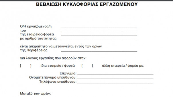 4. Προς διευκόλυνση του ελέγχου και την αποφυγή διενέξεων μεταξύ ελεγχόμενων και οργάνων ελέγχου, συστήνεται να γίνεται λελογισμένη χρήση του εντύπου κυκλοφορίας ως προς τα ωράρια εργασίας σύμφωνα με την ειδικότητα του κάθε επαγγέλματος καθώς και να γίνεται γραπτή αναφορά στο έντυπο του τόπου μετακίνησης στο πεδίο που ορίζονται τα όρια της περιφέρειας.