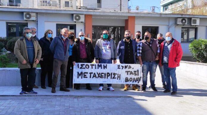 Παράσταση διαμαρτυρίας έκαναν, χωρίς τα ταξί τους, στην Περιφερειακή Ενότητα Μαγνησίας, τα μέλη του Συνδέσμου Ιδιοκτητών Ταξί Βόλου «Άγιος Χριστόφορος», που διαμαρτύρονται διότι βρίσκονται εκτός όλων των ευεργετικών μέτρων στήριξης από την Πολιτεία και ζητούν να ενισχυθούν οικονομικά όπως και οι άλλοι κλάδοι που έχουν πληγεί από την πανδημία, με αποτέλεσμα να βρίσκονται σε αδιέξοδο.