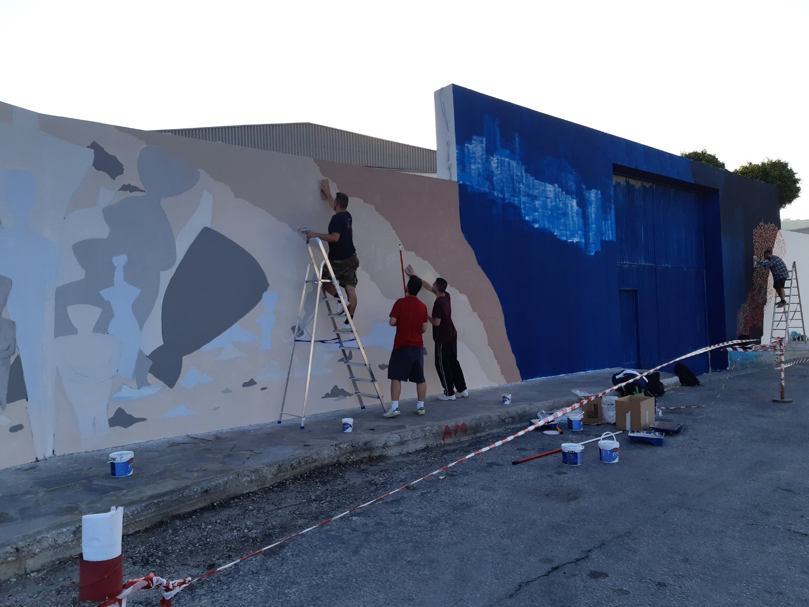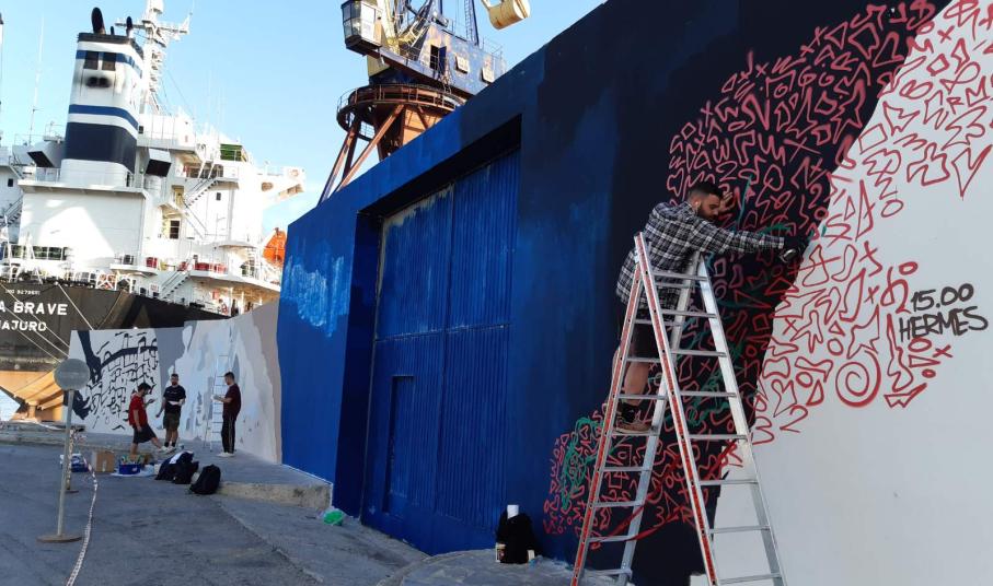 Οι καλλιτέχνες έπιασαν τα χρώματα και ξεκίνησαν την δημιουργία του εικαστικού έργου, που θα κοσμήσει τον εξωτερικό τοίχο της δυτικής πτέρυγας του ναυπηγείου της Σύρου (έναντι π. Πυροσβεστικής), στο πλαίσιο του καλλιτεχνικού διαγωνισμού, που είχε προκηρύξει η ONEX Syros Neorion Shipyards.