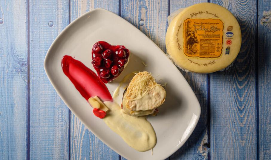 Τι προτείνει ο chef; Για κυρίως πιάτο, μιλφέιγ Γραβιέρας Νάξου Π.Ο.Π. με λαχανικά και σως Γραβιέρας και, για γλυκό, τσιζκέικ με Γραβιέρα Νάξου!