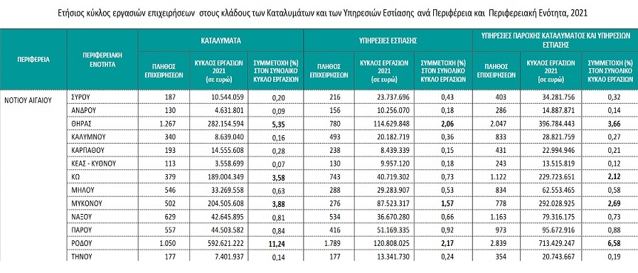 Η Ελληνική Στατιστική Αρχή (ΕΛΣΤΑΤ) παρουσιάζει τη χαρτογράφηση της εξέλιξης του κύκλου εργασιών των επιχειρήσεων που δραστηριοποιούνται στους κλάδους των καταλυμάτων και των υπηρεσιών εστίασης.