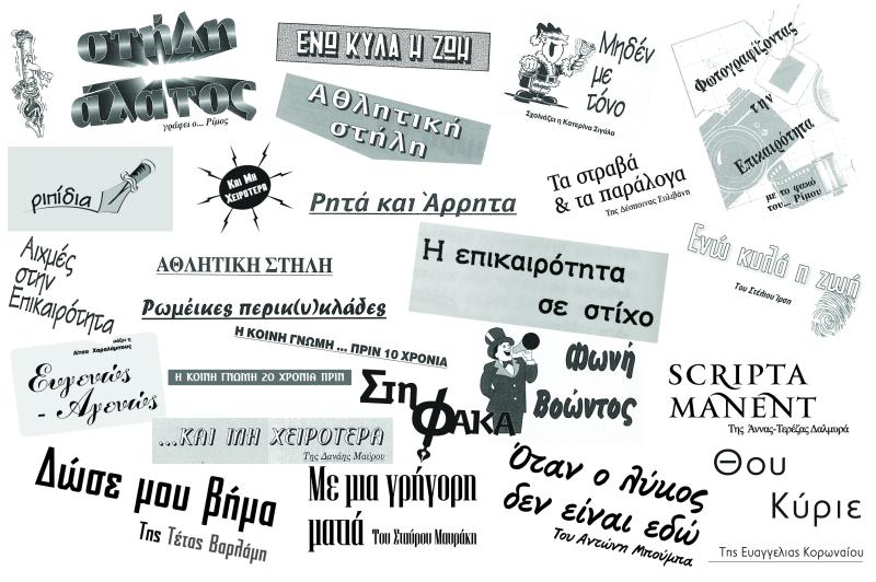 Οι τίτλοι αυτής της “ενότητας” έχουν ως εξής: Γράφει ο Ρίµος, Στήλη Άλατος, Ριπίδια, Φωτογραφίζοντας την επικαιρότητα, Σκέψεις, Ευγενώς Αγενώς, Αθλητική Στήλη, Αιχµές στην επικαιρότητα, Φωνή βοώντος, Μηδέν µε τόνο, Ρωµέικες Περι(κ)υκλάδες, Ρητά και Άρρητα, Η “Κοινή Γνώµη” πριν δέκα χρόνια, Ενώ η ζωή κυλά, Τα εν οίκω, Και µη χειρότερα, Τα στραβά και τα παράλογα, Με µια γρήγορα µατιά, Θου Κύριε, Όταν ο λύκος δεν είναι εδώ, Scripta Manent, ∆ώσε µου βήµα, Ψιλά γράµµατα.
