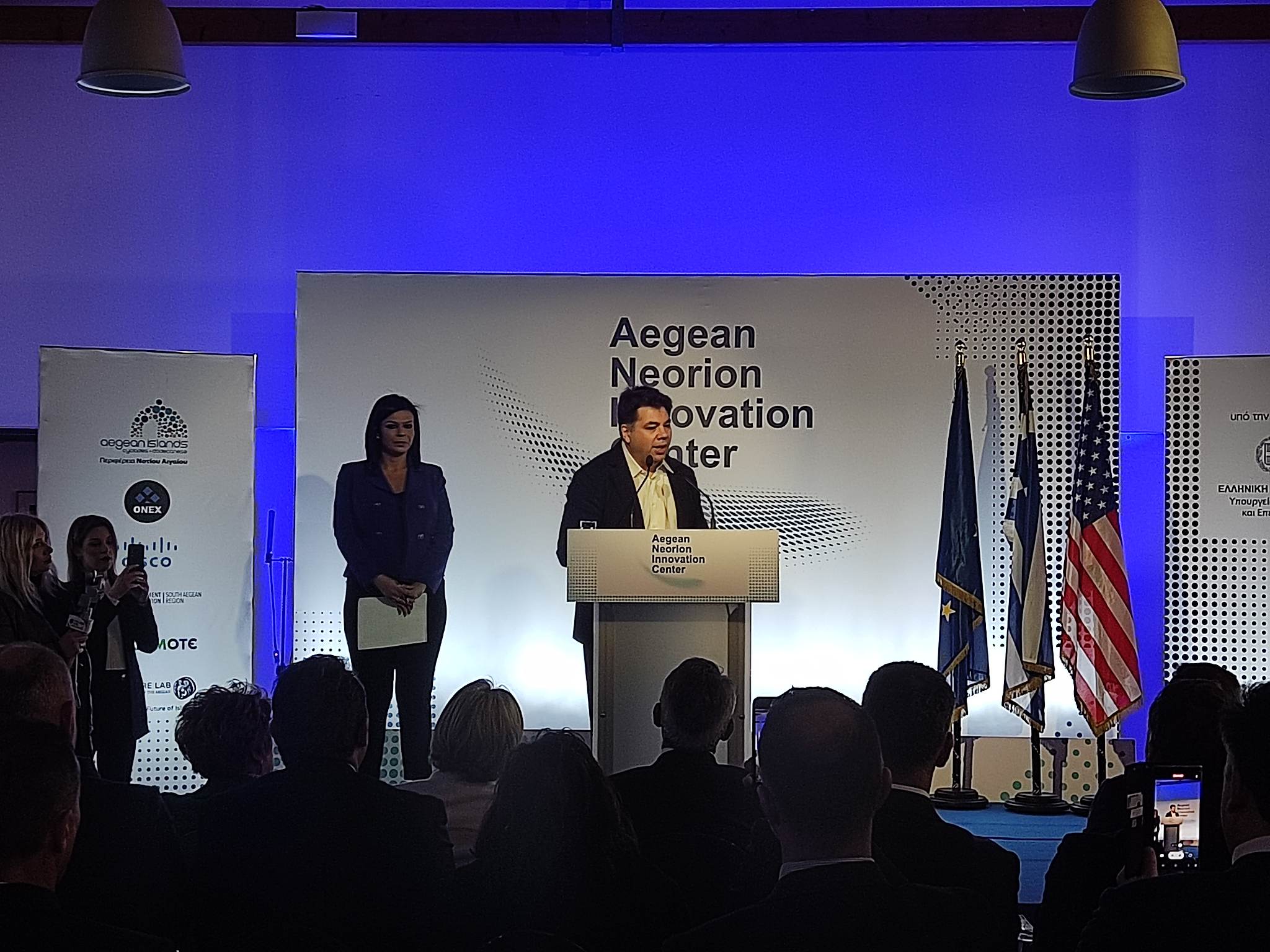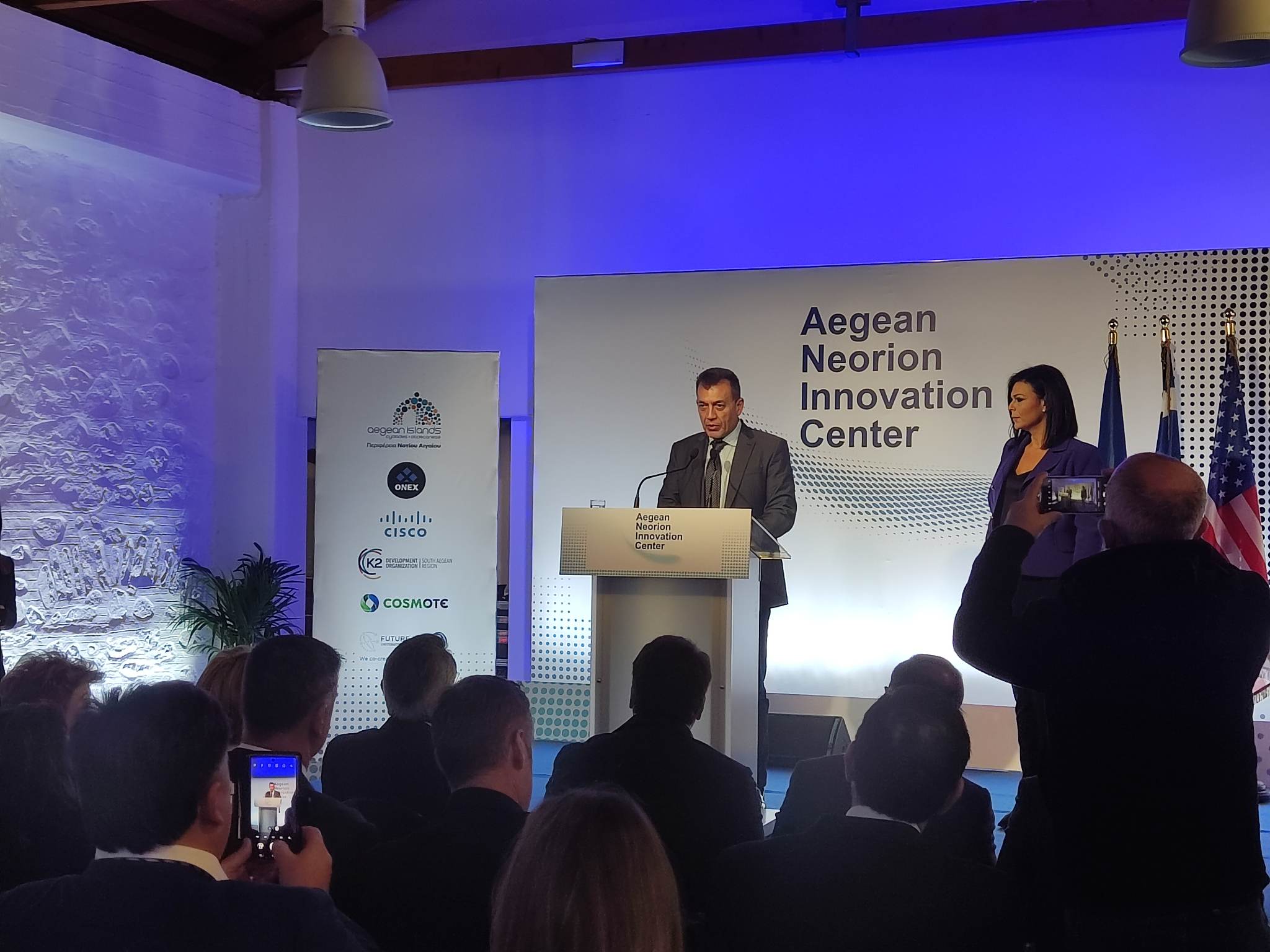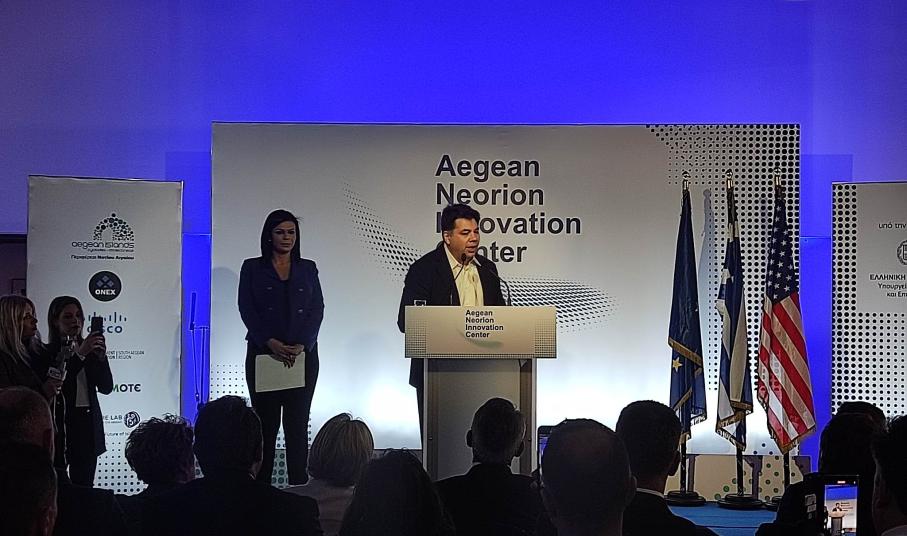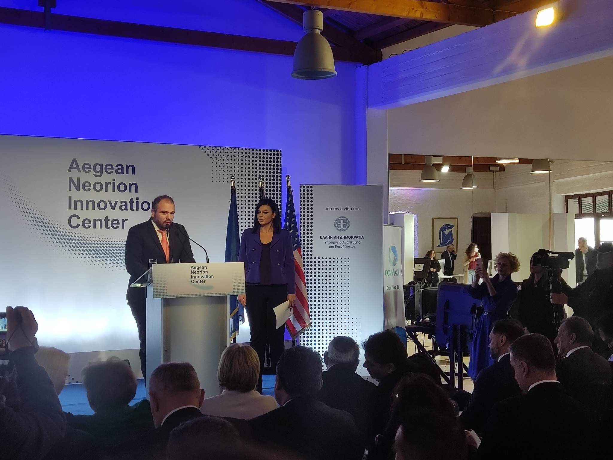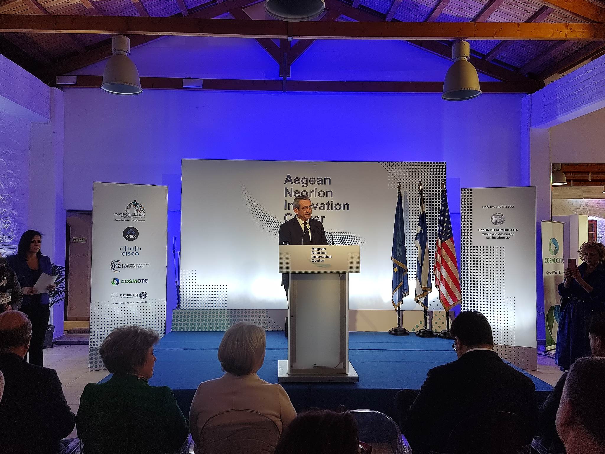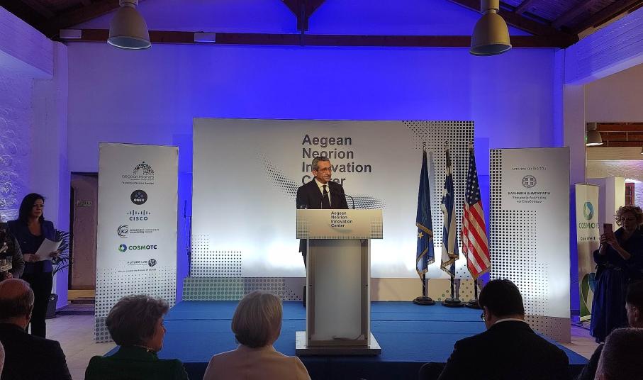 Ακολούθησε η ξενάγηση του Αμερικανού πρέσβη, Γεωργίου Τσούνη, στους εσωτερικούς χώρους Διεθνούς Κέντρου στο κτήριο που αυτό λειτουργεί, ενώ αμέσως μετά πραγματοποιήθηκαν οι χαιρετισμοί και οι ομιλίες τόσο του κ. Τσούνη, του εκπροσώπου του Υπουργείου Ψηφιακής Διακυβέρνησης, Κωνσταντίνου Χαμπίδη, του δημάρχου Σύρου Ερμούπολης Ν. Λειβαδάρα, του περιφερειάρχη Ν. Αιγαίου Γ. Χατζημάρκου, του προέδρου και CEO της ΟΝΕΧ Π.Ξενοκώστα, του γενικού διευθυντή της Cisco για την Ελλάδα, την Κύπρο, την Πορτογαλία και τη Μάλτα Α.Τσιμπούκη.
