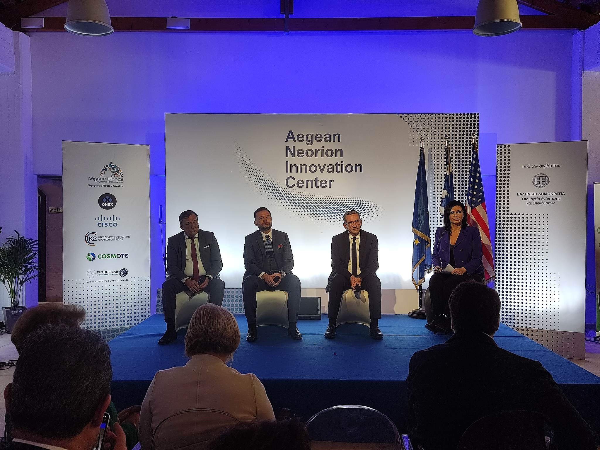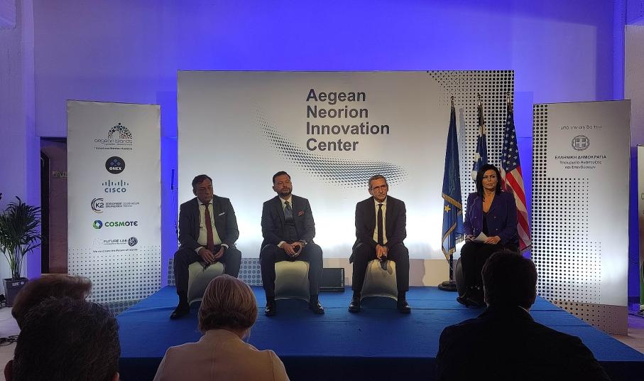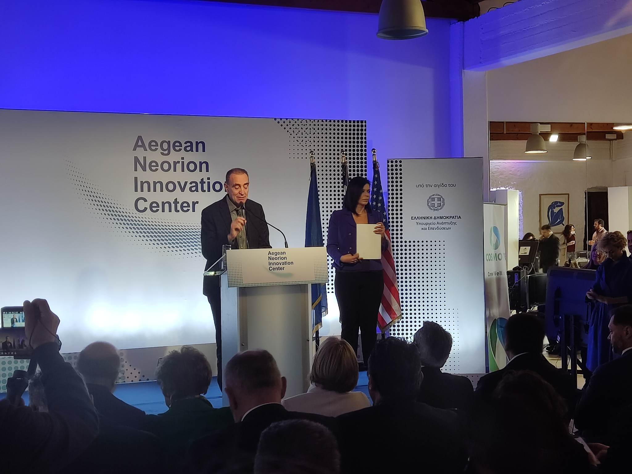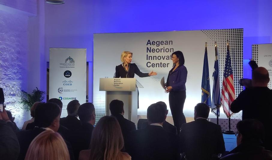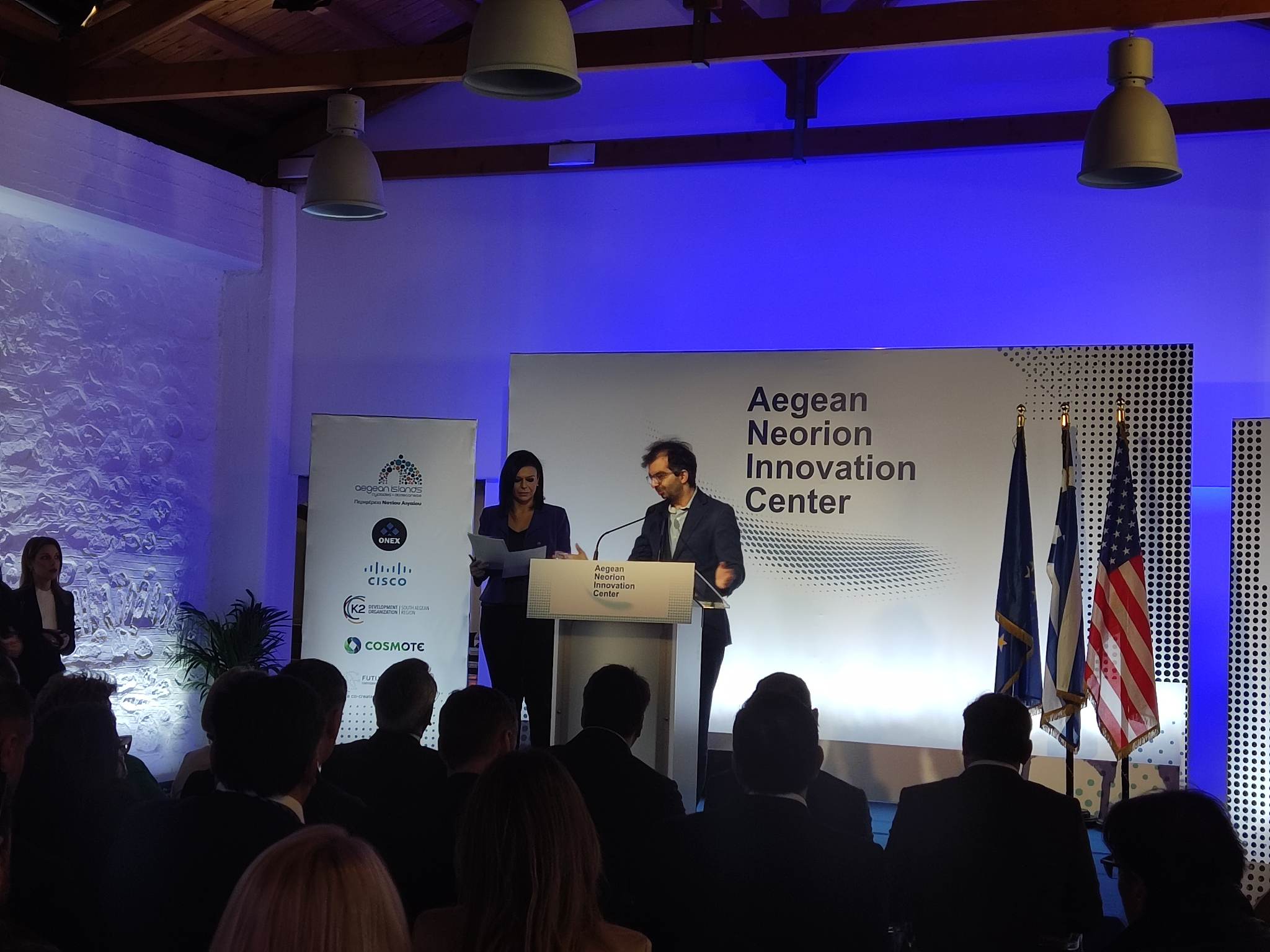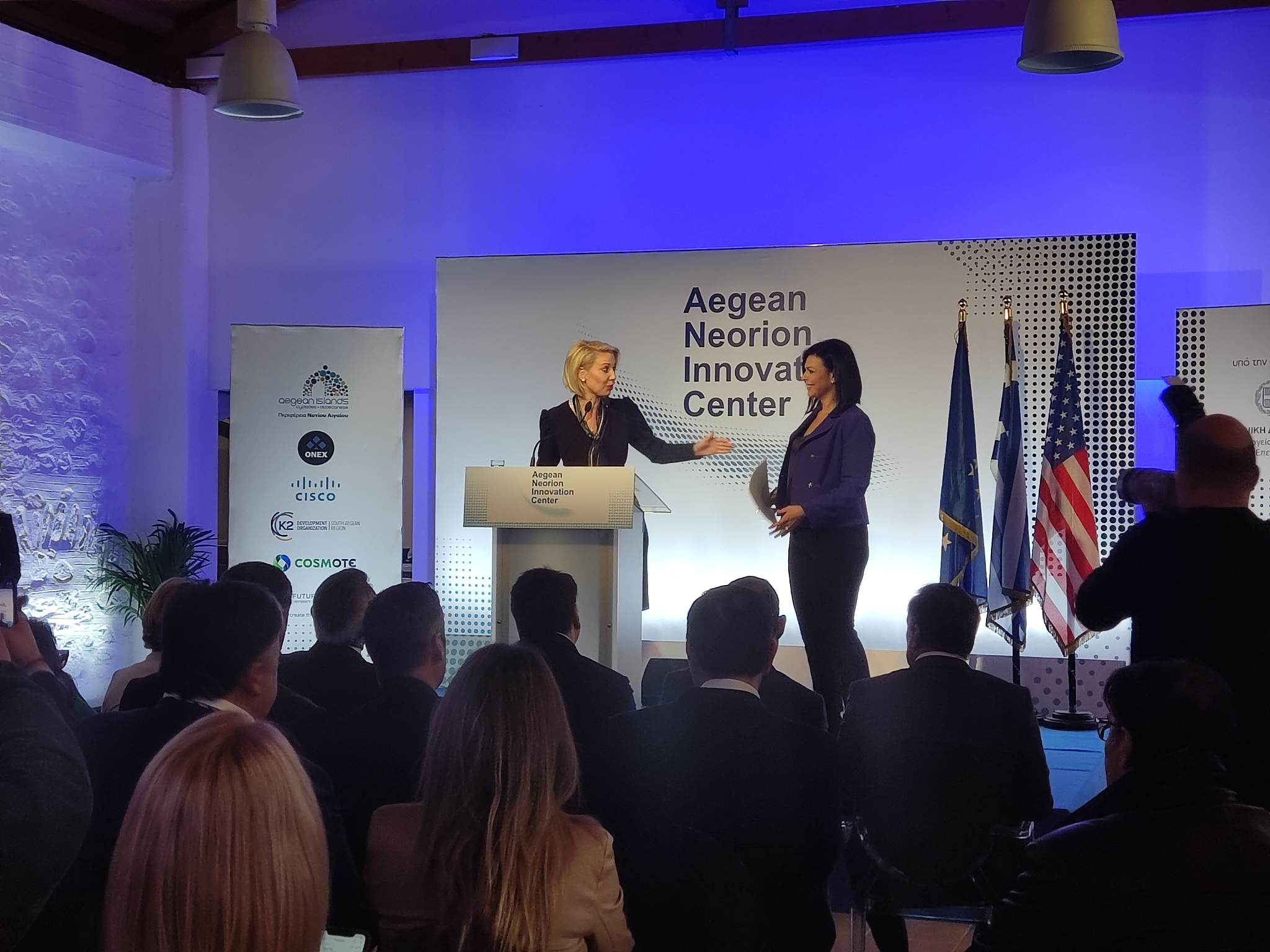 Ακολούθησε η ξενάγηση του Αμερικανού πρέσβη, Γεωργίου Τσούνη, στους εσωτερικούς χώρους Διεθνούς Κέντρου στο κτήριο που αυτό λειτουργεί, ενώ αμέσως μετά πραγματοποιήθηκαν οι χαιρετισμοί και οι ομιλίες τόσο του κ. Τσούνη, του εκπροσώπου του Υπουργείου Ψηφιακής Διακυβέρνησης, Κωνσταντίνου Χαμπίδη, του δημάρχου Σύρου Ερμούπολης Ν. Λειβαδάρα, του περιφερειάρχη Ν. Αιγαίου Γ. Χατζημάρκου, του προέδρου και CEO της ΟΝΕΧ Π.Ξενοκώστα, του γενικού διευθυντή της Cisco για την Ελλάδα, την Κύπρο, την Πορτογαλία και τη Μάλτα Α.Τσιμπούκη.