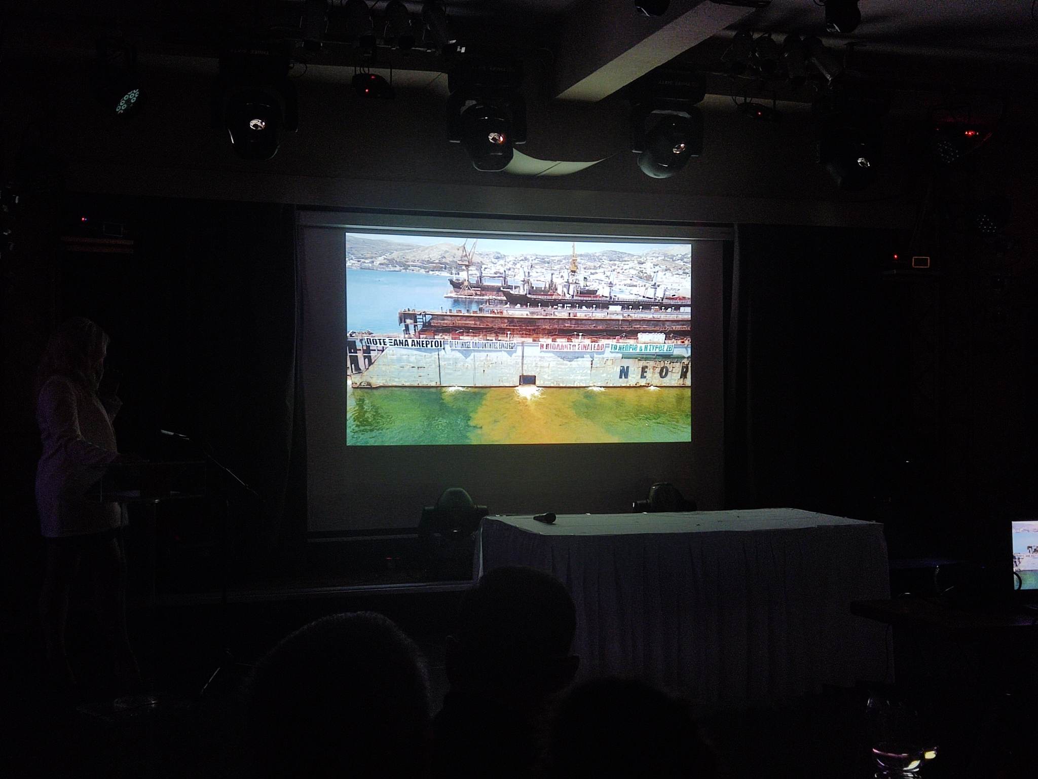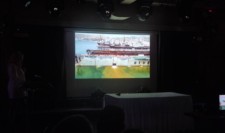 Μέσα από ένα 10λεπτο βίντεο, οι παρευρισκόμενοι είχαν την ευκαιρία να παρακολουθήσουν τα βήματα αναγέννησης και προόδου του Νεωρίου, από το σημείο μηδέν, που οι εγκαταστάσεις δεν είχαν ρεύμα μέχρι και σήμερα, που το ναυπηγείο της Σύρου αποτελεί συζήτηση στα χείλη πολλών εφοπλιστών.