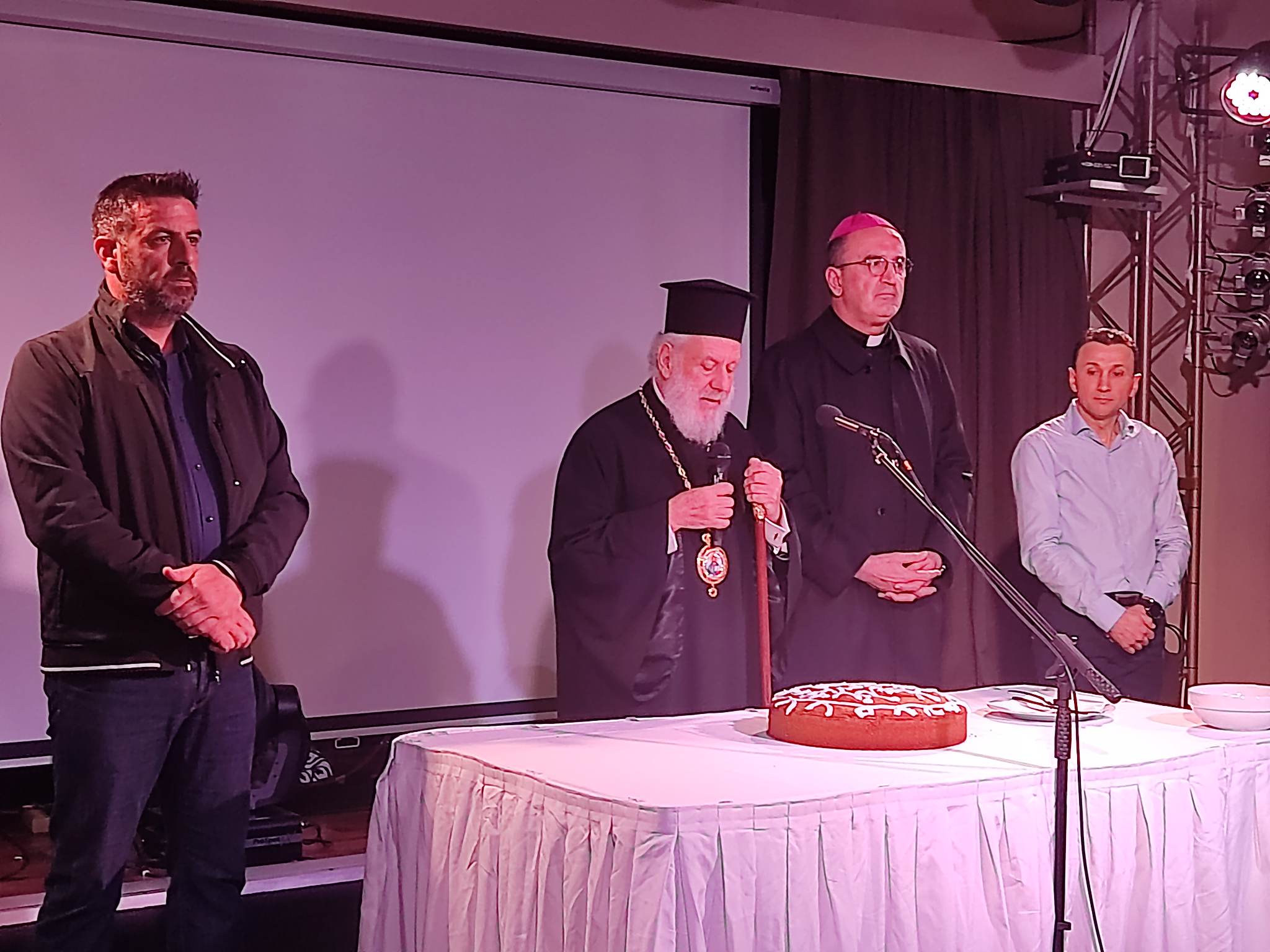 Ειδικότερα, αμέσως μετά τους χαιρετισμούς του μητροπολίτη Σύρου, κ. Δωροθέου Β΄ και του Καθολικού Επισκόπου, π. Πέτρου Στεφάνου, ευχήθηκαν με θερμά λόγια στους εργαζομένους και τη διοίκηση, οι βουλευτές, Γιάννης Βρούτσης, Φίλιππος Φόρτωμας και Κατερίνα Μονογυιού, ο χωρικός αντιπεριφερειάρχης, Γιώργος Λεονταρίτης, η εκπρόσωπος του Δήμου Σύρου – Ερμούπολης, Αγγελική Πρίντεζη καθώς επίσης γραπτό χαιρετισμό απέστειλε ο Ανδρέας Νεφελούδης.