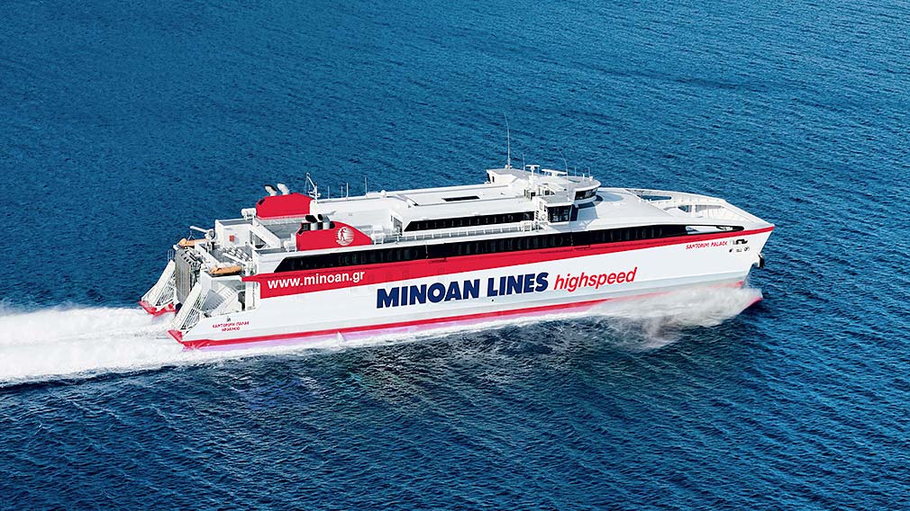 Επιβιβαστείτε στο υπερσύγχρονο High-speed Catamaran Santorini Palace και αναβαθμίστε κάθε ταξίδι προς τις αγαπημένες σας Κυκλάδες. Ενημερωθείτε για το πρόγραμμα των δρομολογίων και τις μοναδικές προσφορές και κλείστε τα εισιτήριά σας στο www.minoan.gr, τα κεντρικά πρακτορεία ή λιμενικά γραφεία της MINOAN LINES ή από τον ταξιδιωτικό σας πράκτορα.