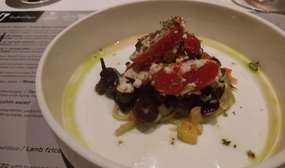 Σαλάτα χωριάτικη με βασιλικό, τοματίνια, ταλιάτα αγγουριού και ξινό τυρί Σύρου (Armeo)