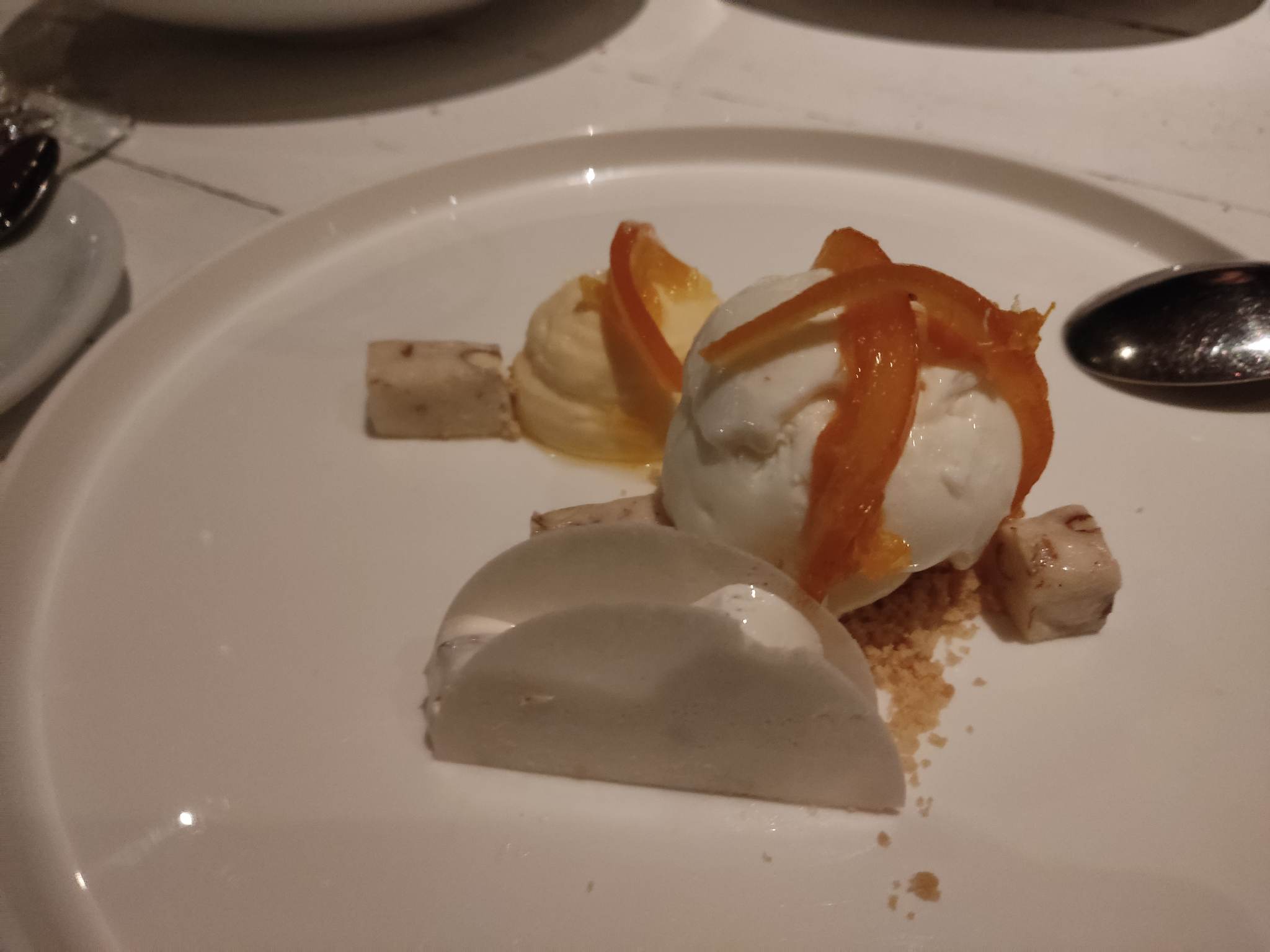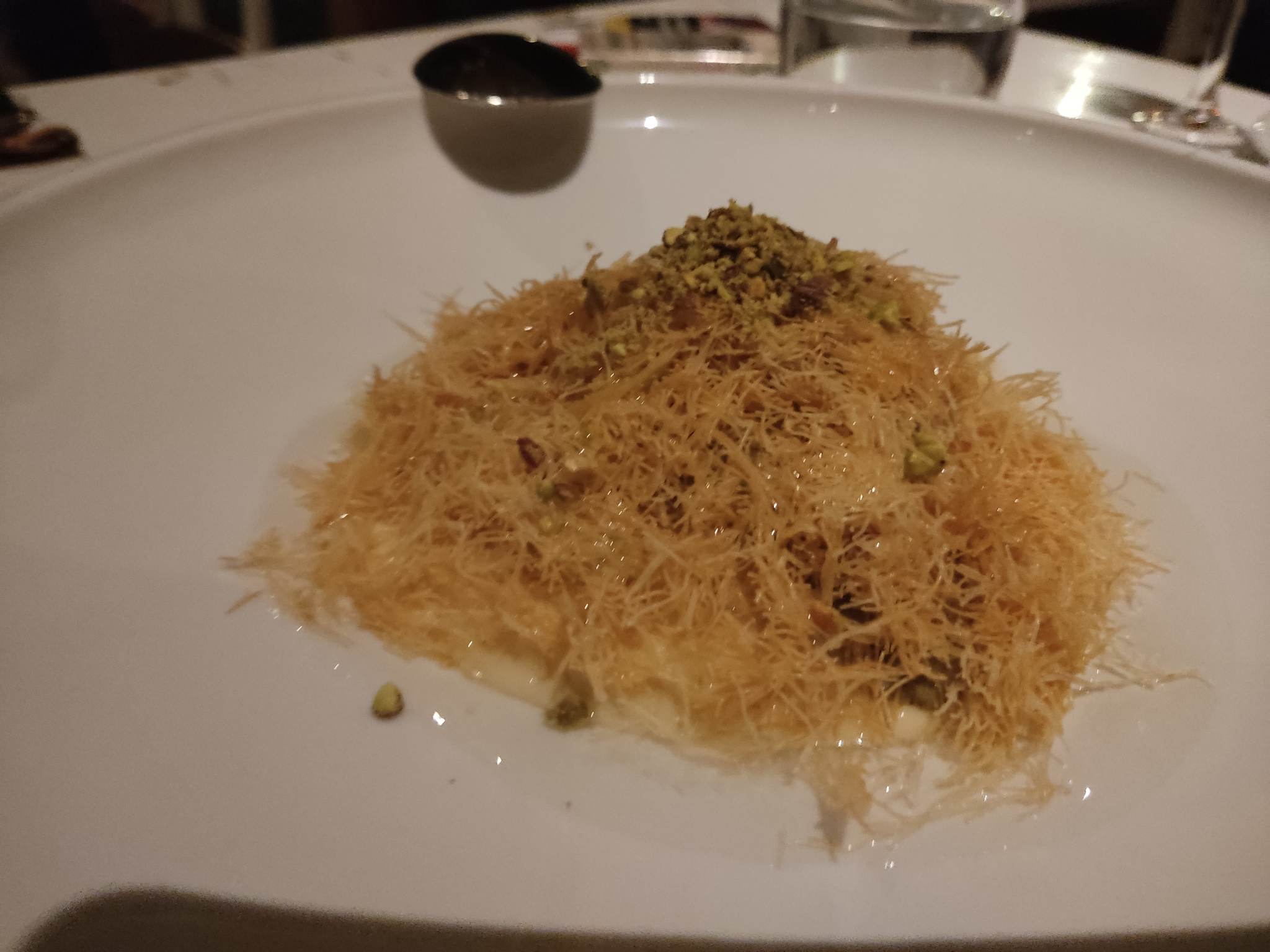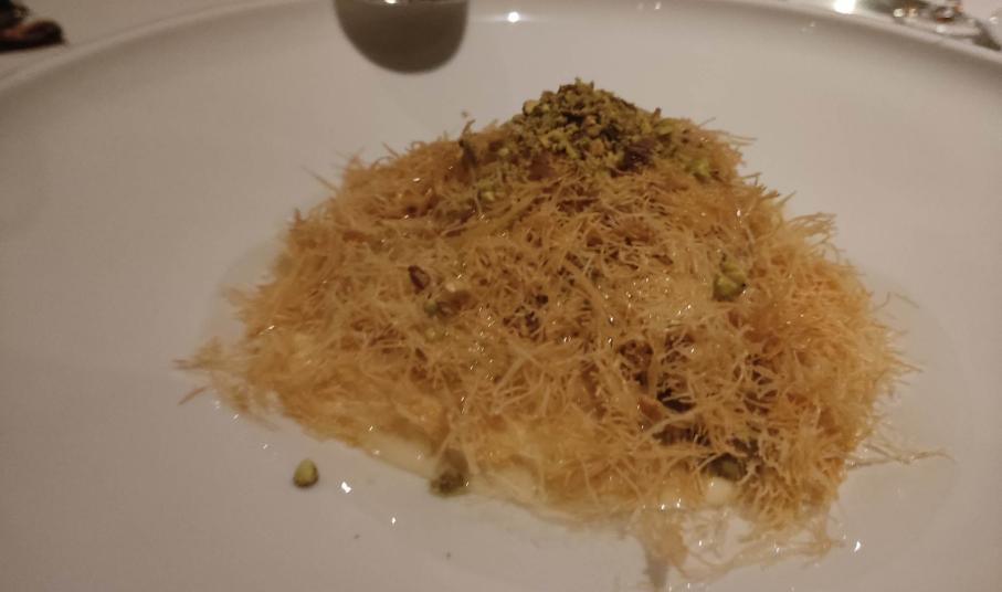 Εκμέκ Κανταϊφι, παγωτό καϊμάκι, πραλίνα φουντουκιού σιρόπι τζίντζερ και φιστικί Αιγίνης