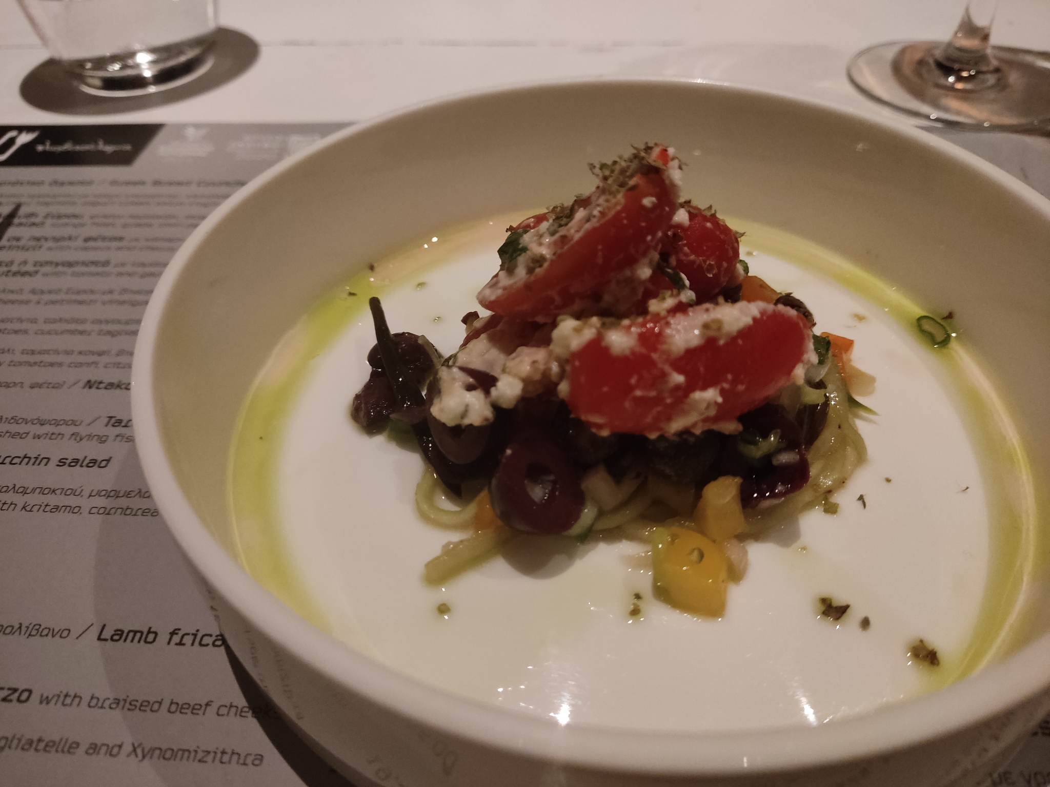 Κρασί: Σαν τα Μάραθα, οινοποιείο Χατζάκης Ασύρτικο, λαϊμ, λεμόνι, γκρεϊπφρουτ, περγαμόντο, λευκόσαρκο ροδάκινο, μέτρια αρωματική ένταση, μέτριο σώμα, έντονα λιπαρό, με έντονη οξύτητα και ορυκτότητα